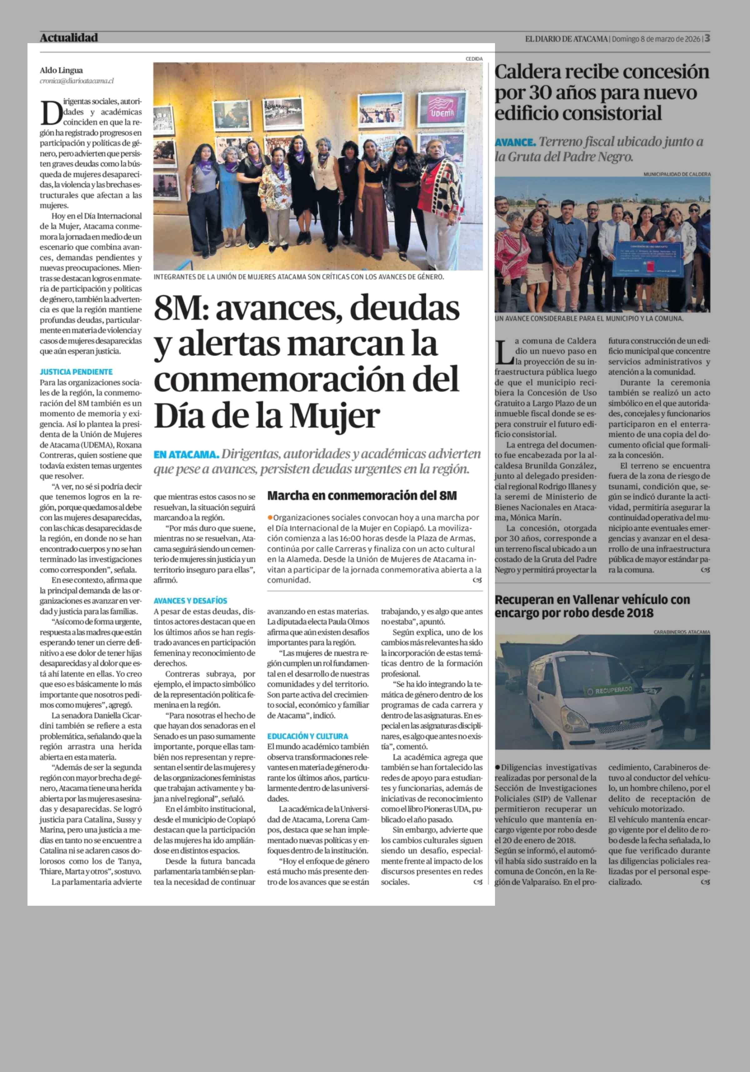 Fecha: 08-03-2026 Sector: Noticia general Región: Región de Atacama