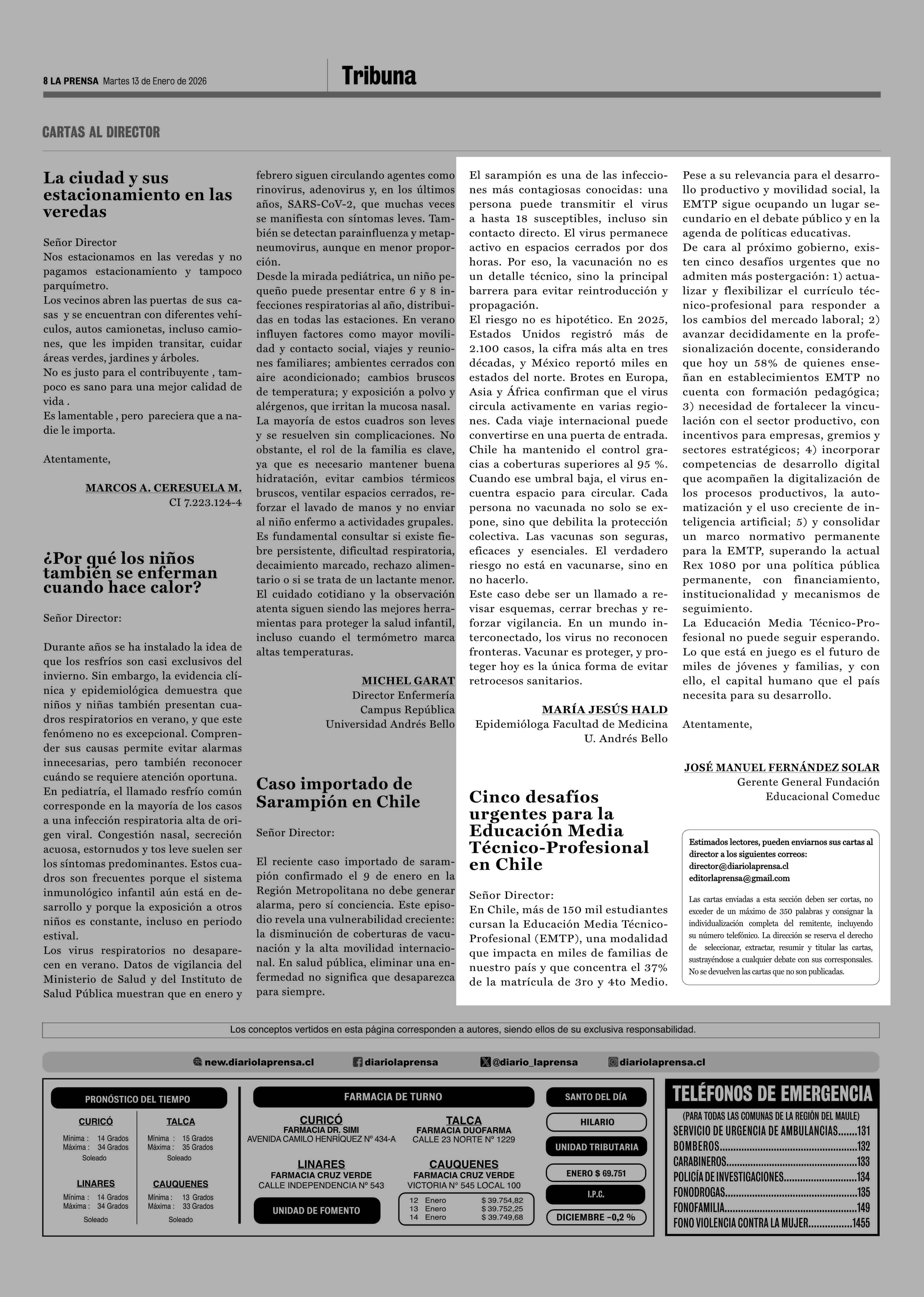 13-01-2026 La Prensa de Curicó