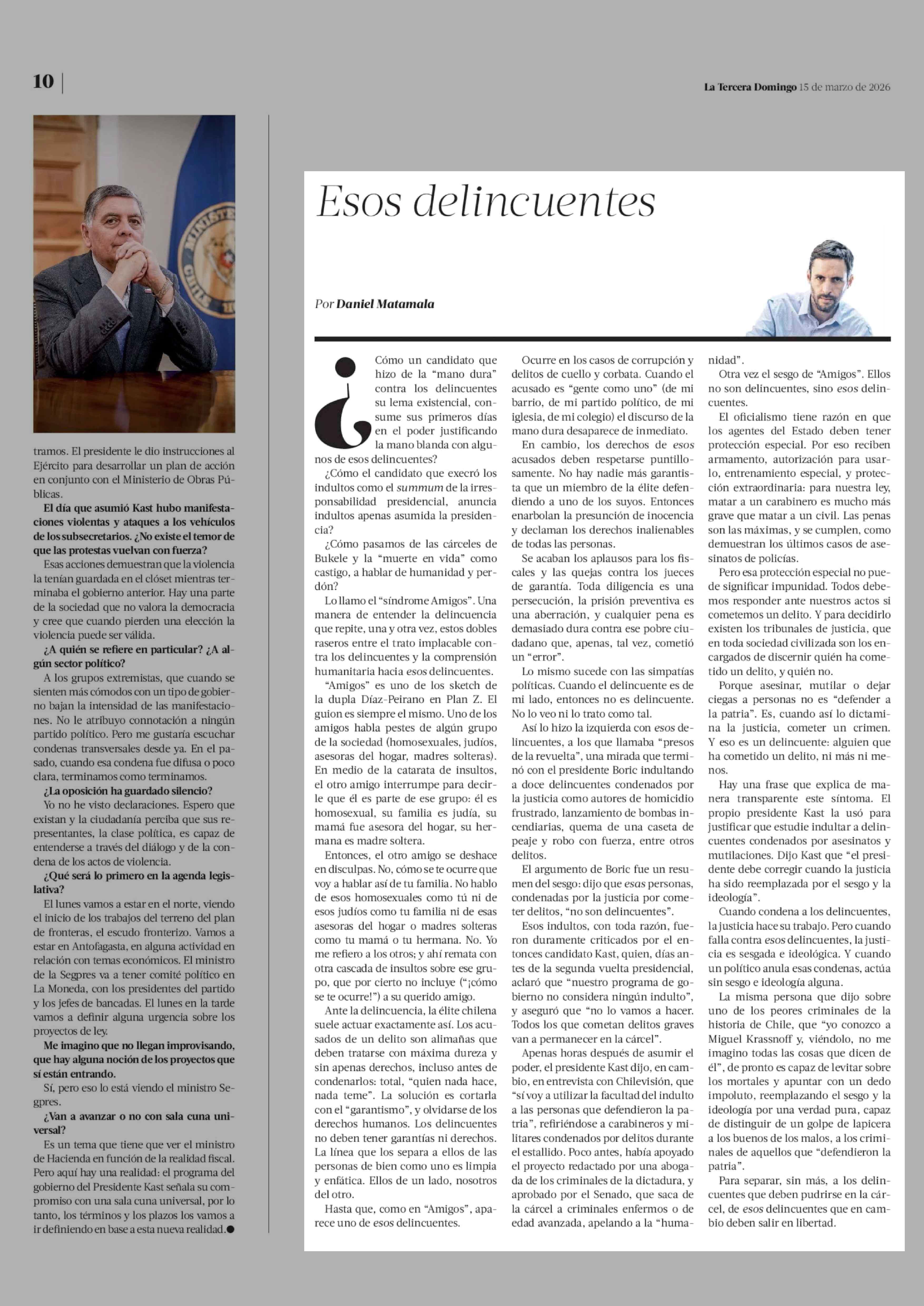Columnas de Opinión: Esos delincuentes 15-03-2026 La Tercera |