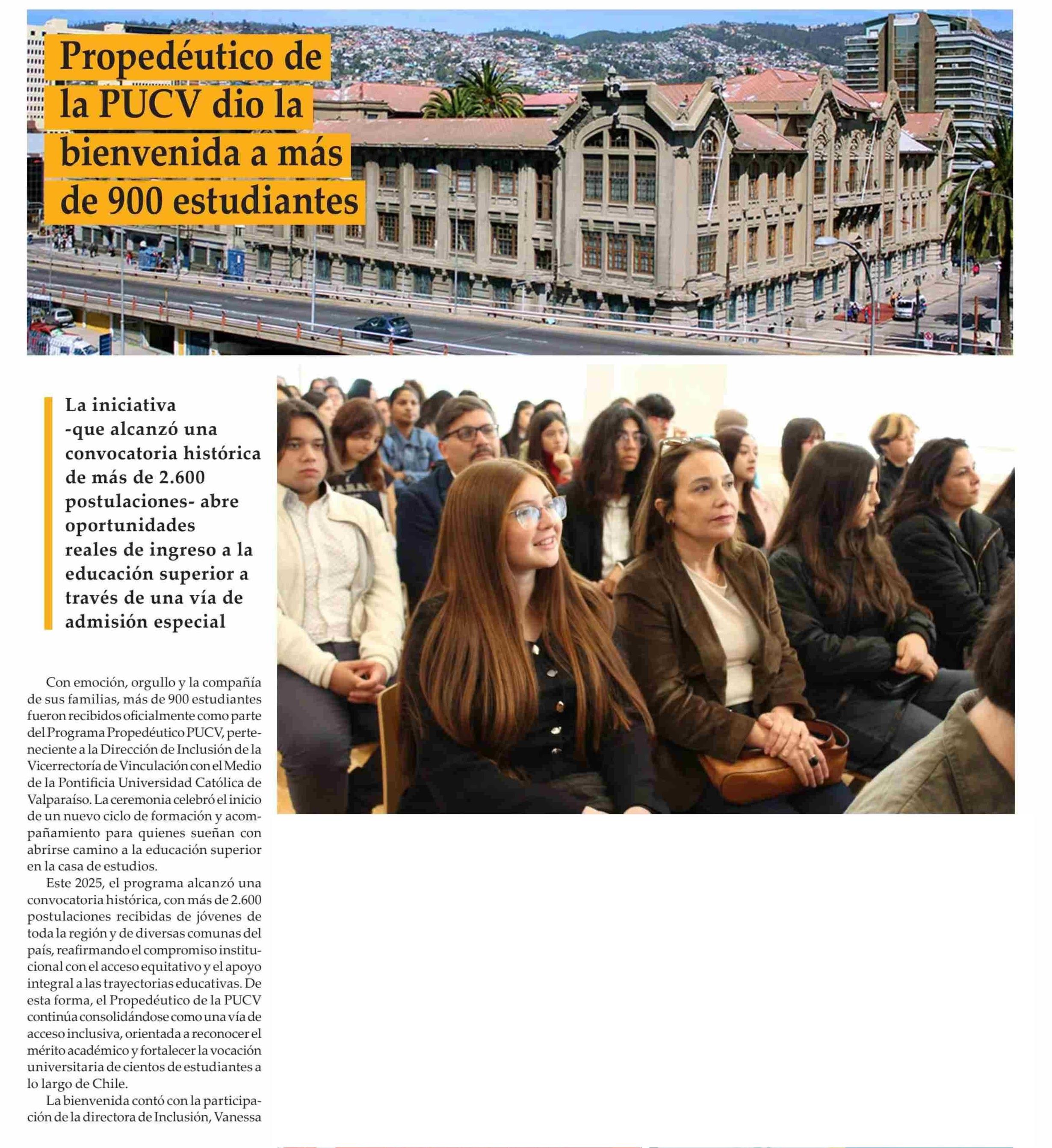 Propedéutico de la PUCV dio la bienvenida a más de 900 estudiantes 06-05-2025 El Observador Vespertino |