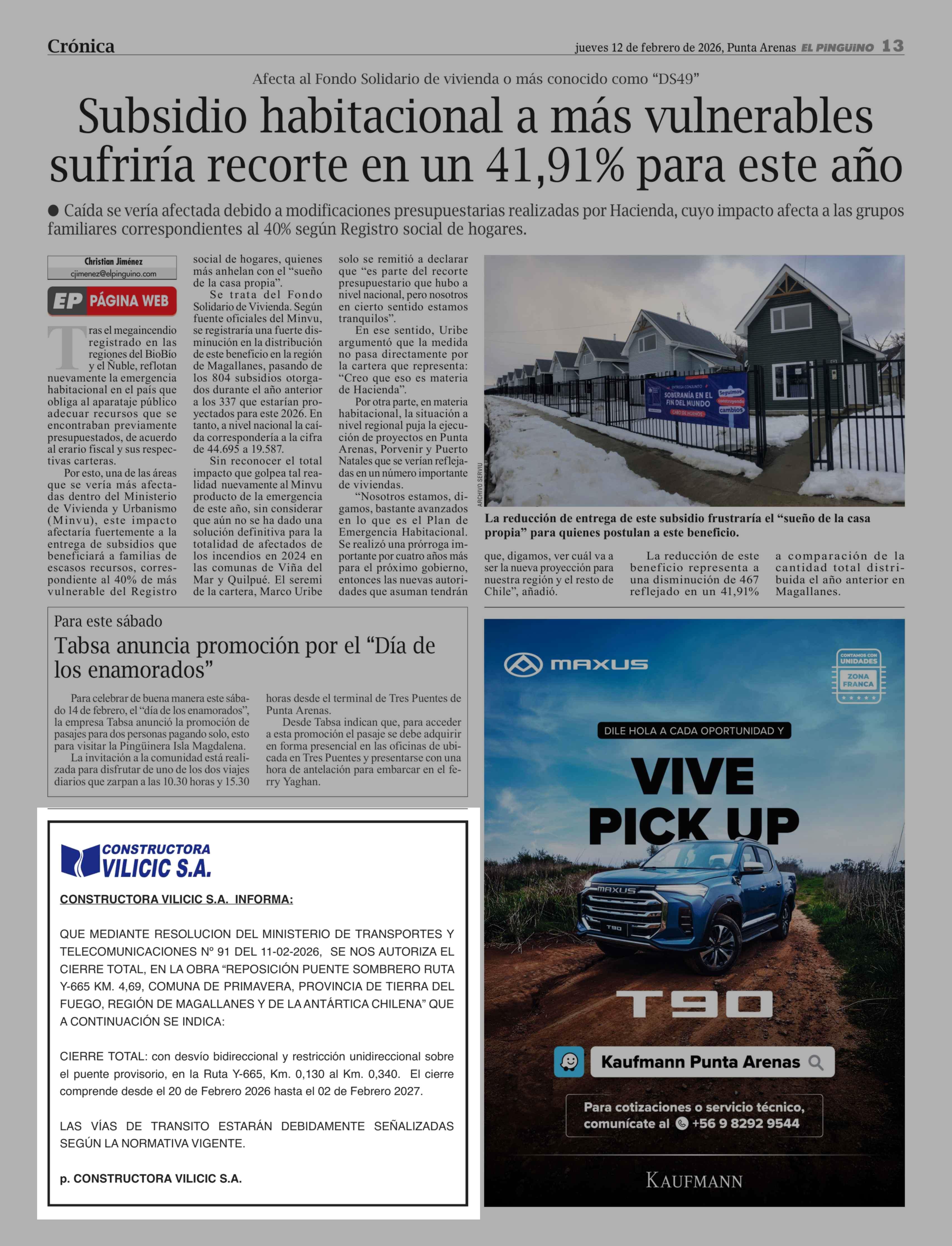 Fecha: 12-02-2026 Sector: Extractos Región: Región de Magallanes y de la Antártica Chilena