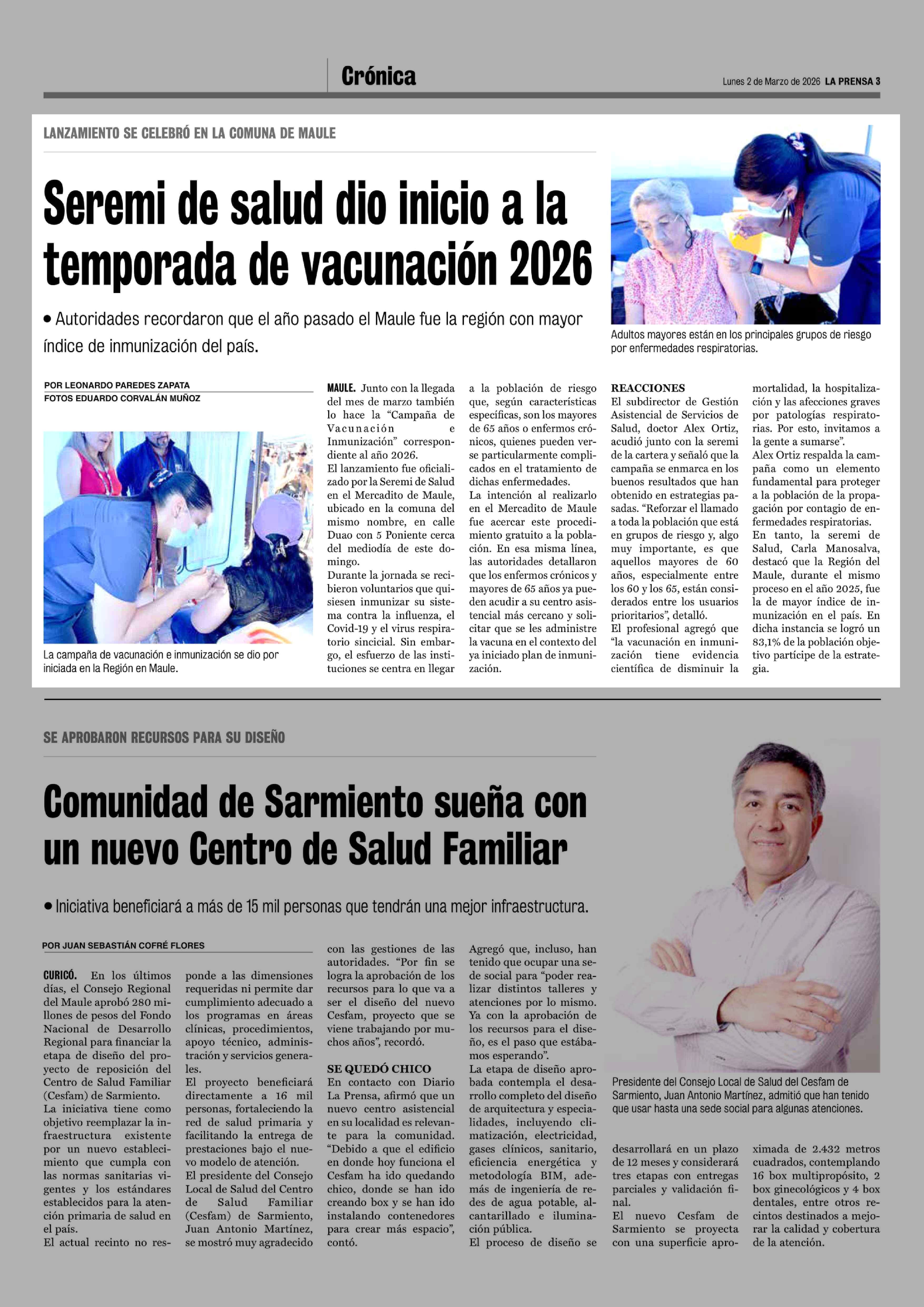 Seremi de salud dio inicio a la temporada de vacunación 2026 02-03-2026 La Prensa de Curicó |