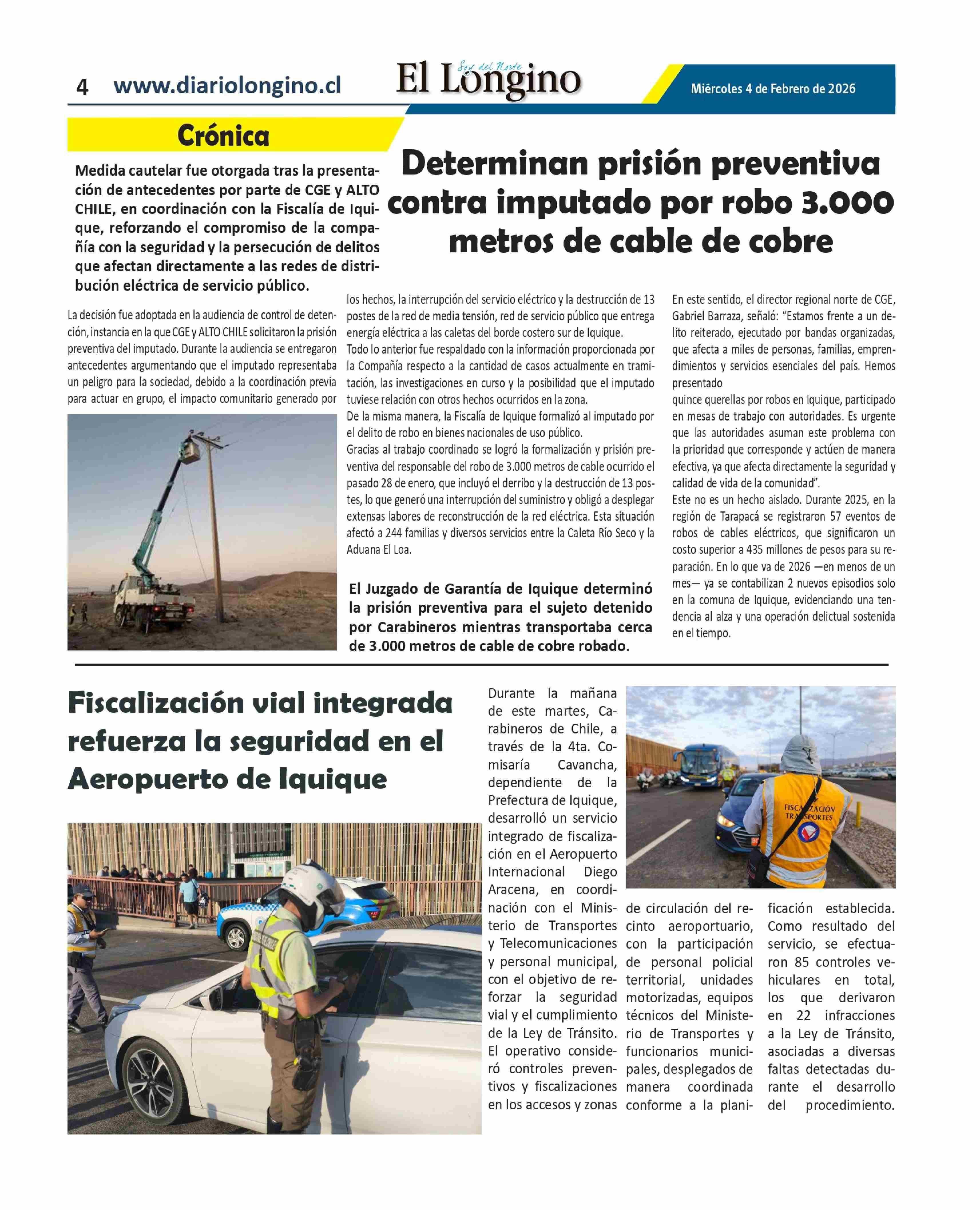 Fecha: 04-02-2026 Sector: Noticia general Región: Región de Tarapacá