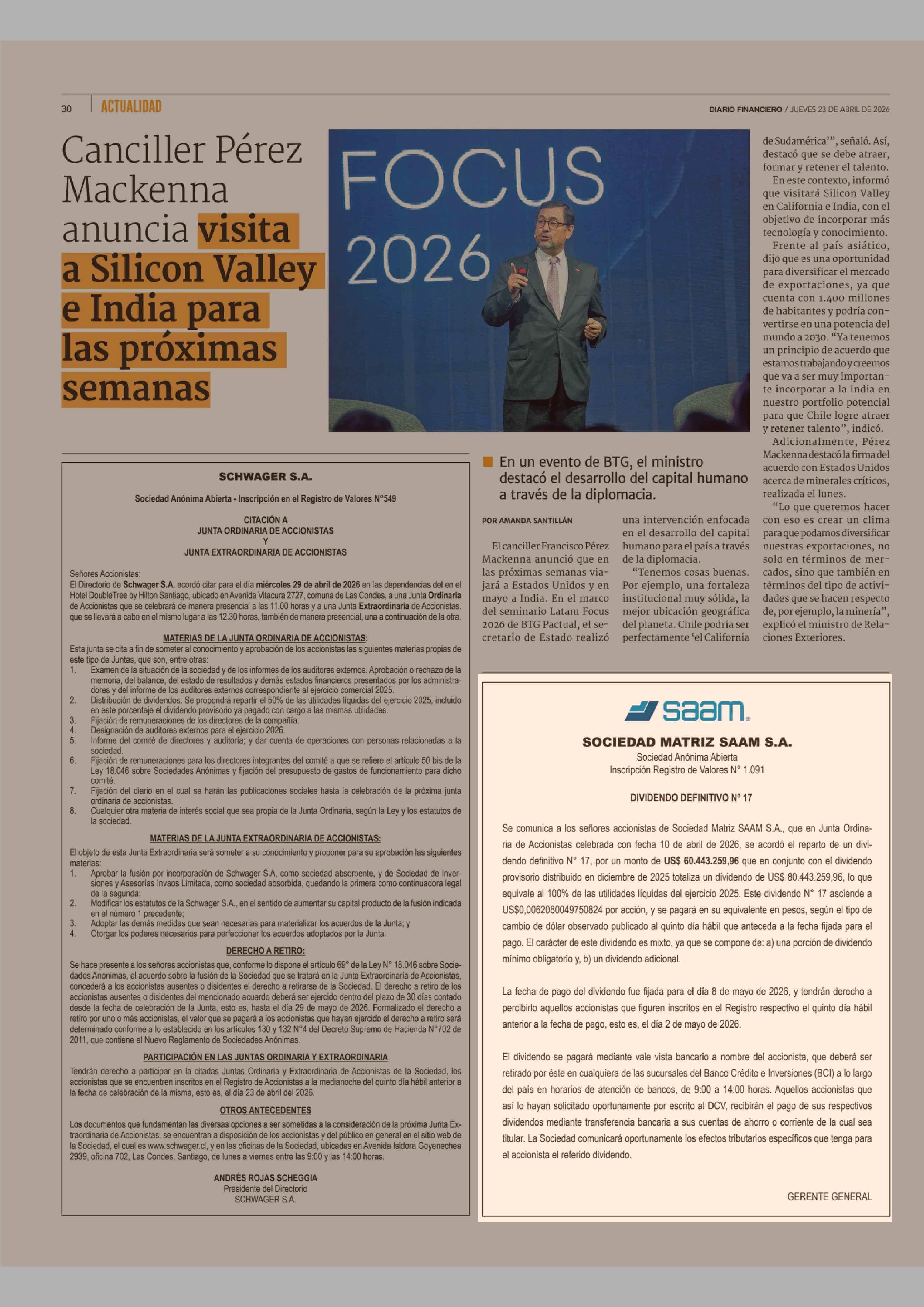EXTRACTOS: SOCIEDAD MATRIZ SAAM S.A. 23-04-2026 Diario Financiero |