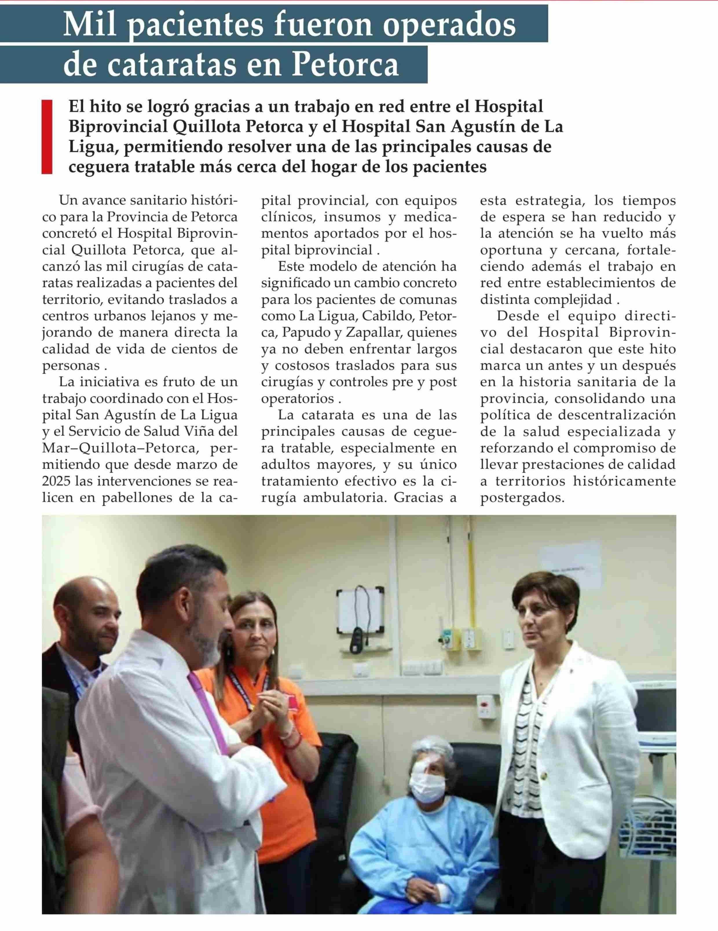 | Título: | Mil pacientes fueron oierados de cataratas en Petorca |