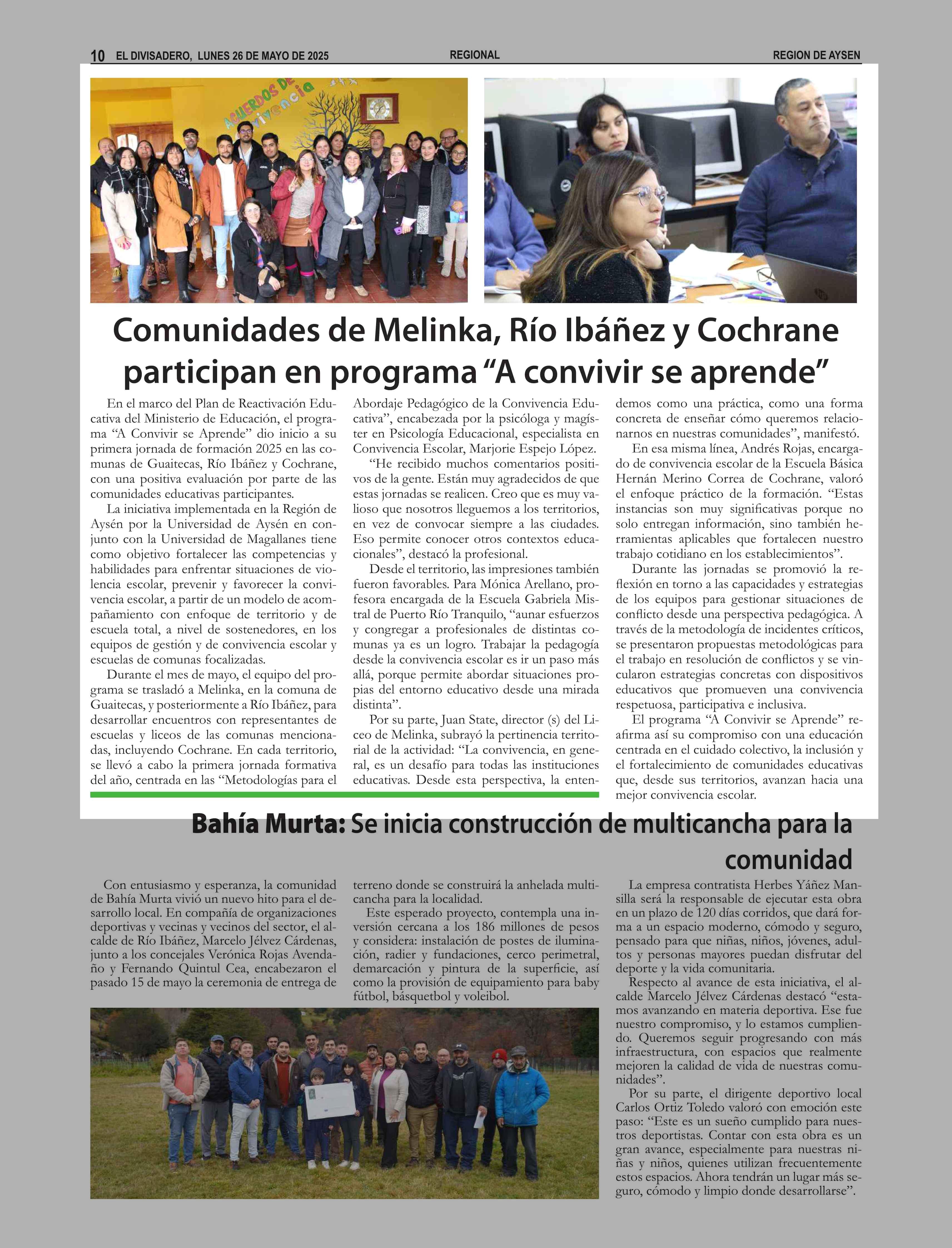 Comunidades de Melinka, Río Ibáñez y Cochrane participan en programa “A convivir se aprende” 26-05-2025 El Divisadero |