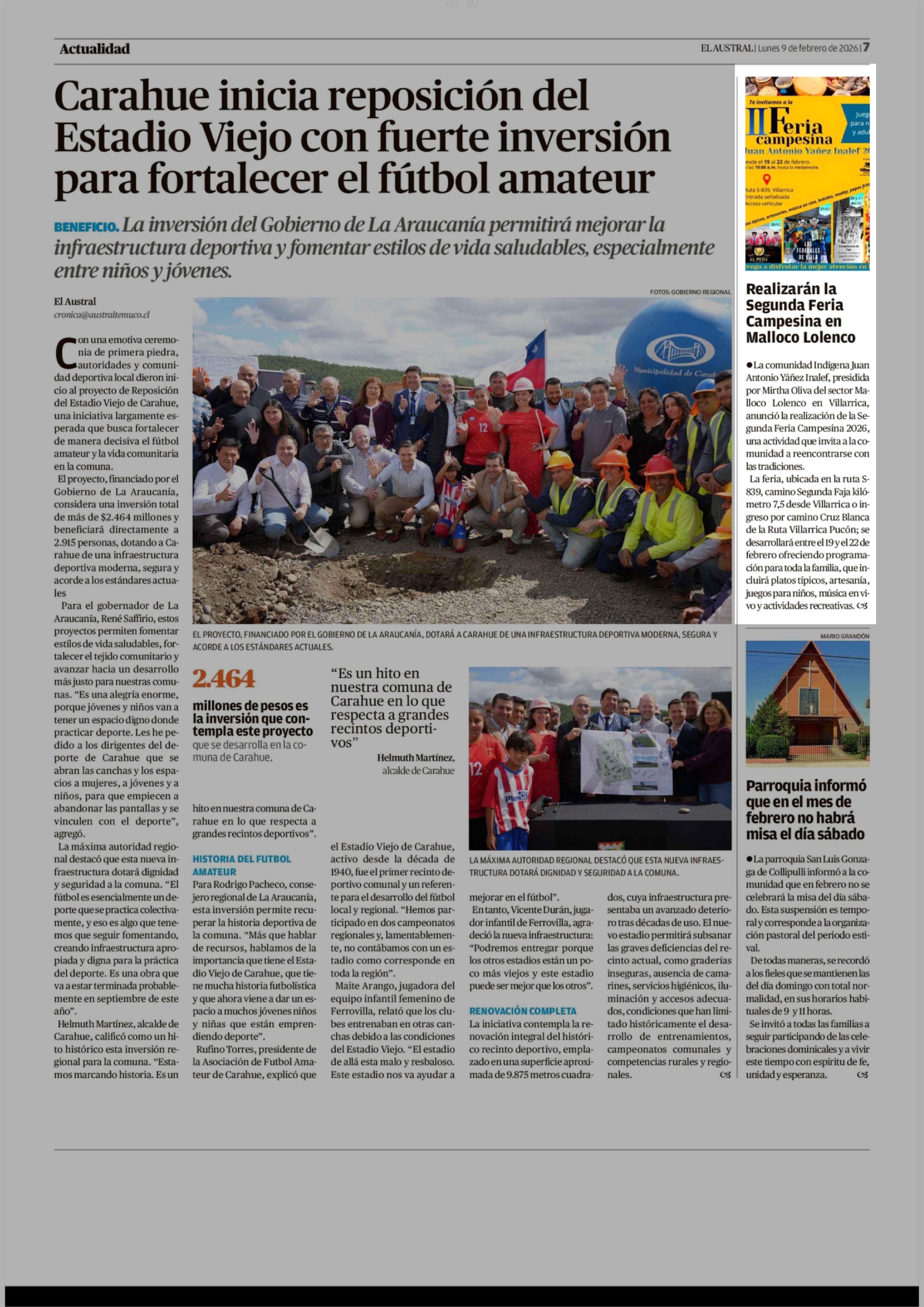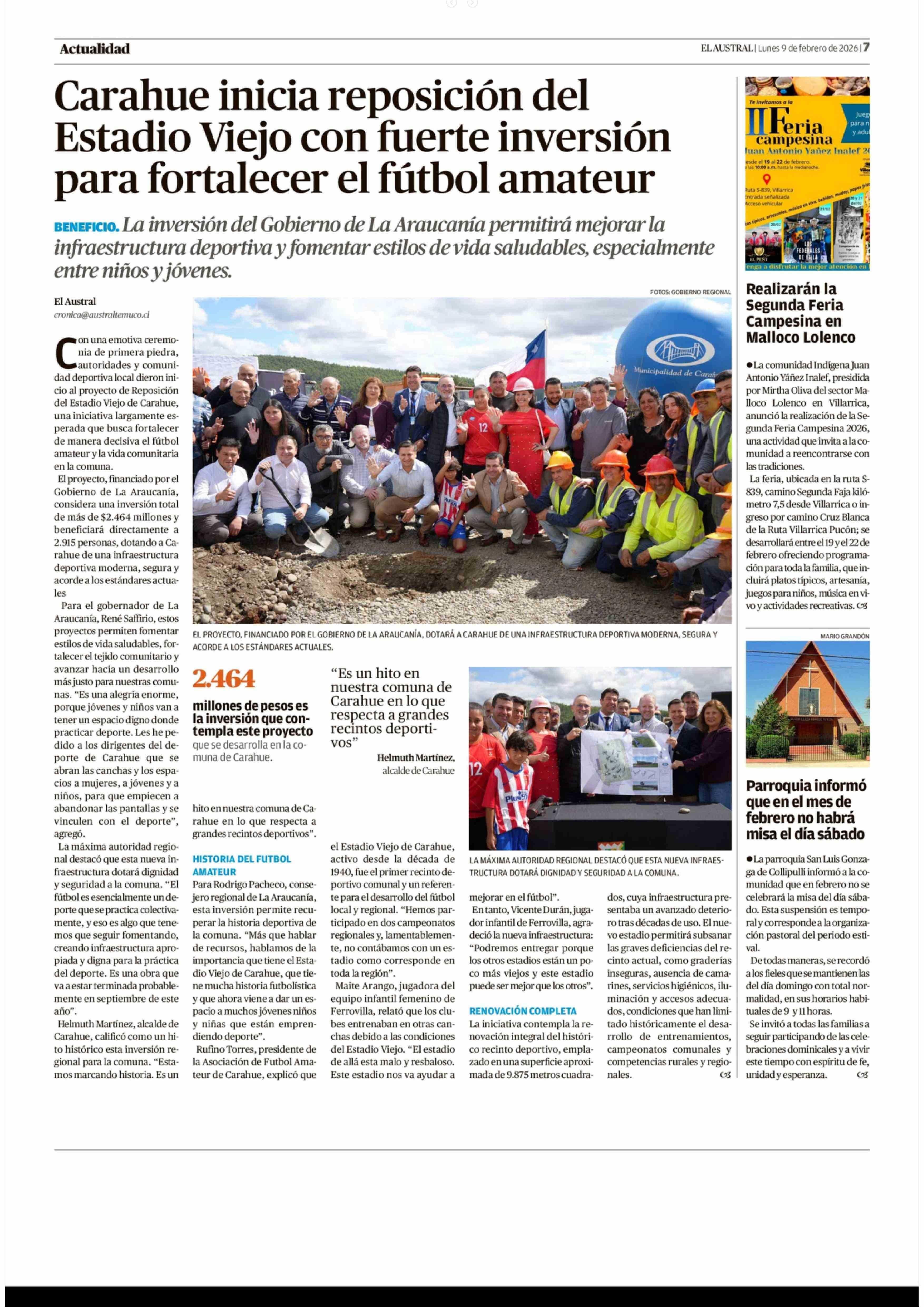 Fecha: 09-02-2026 Sector: Noticia general Región: Región de la Araucanía
