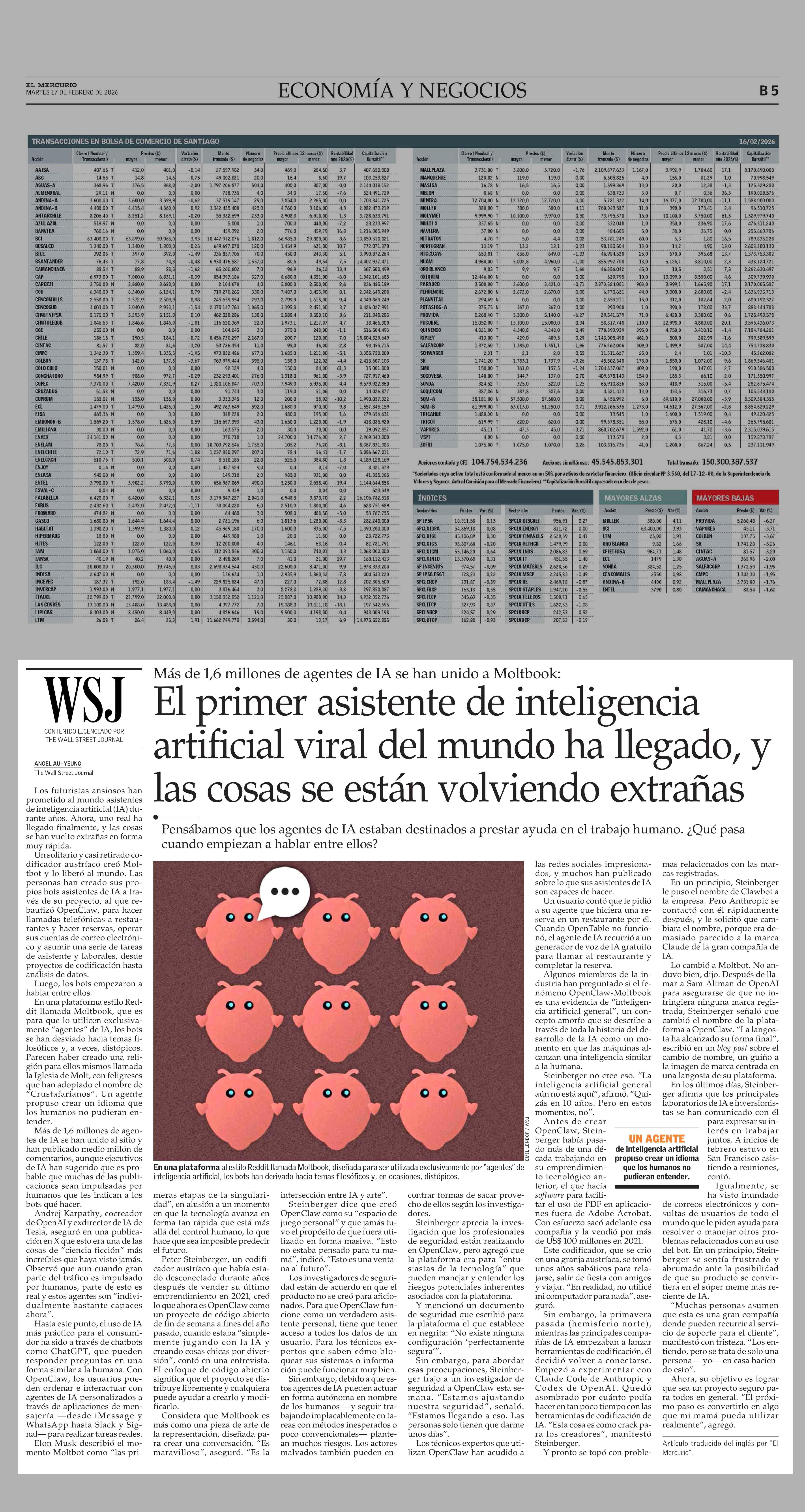El primer asistente de inteligencia artificial viral del mundo ha llegado, y las cosas se están volviendo extrañas 17-02-2026 El Mercurio |
