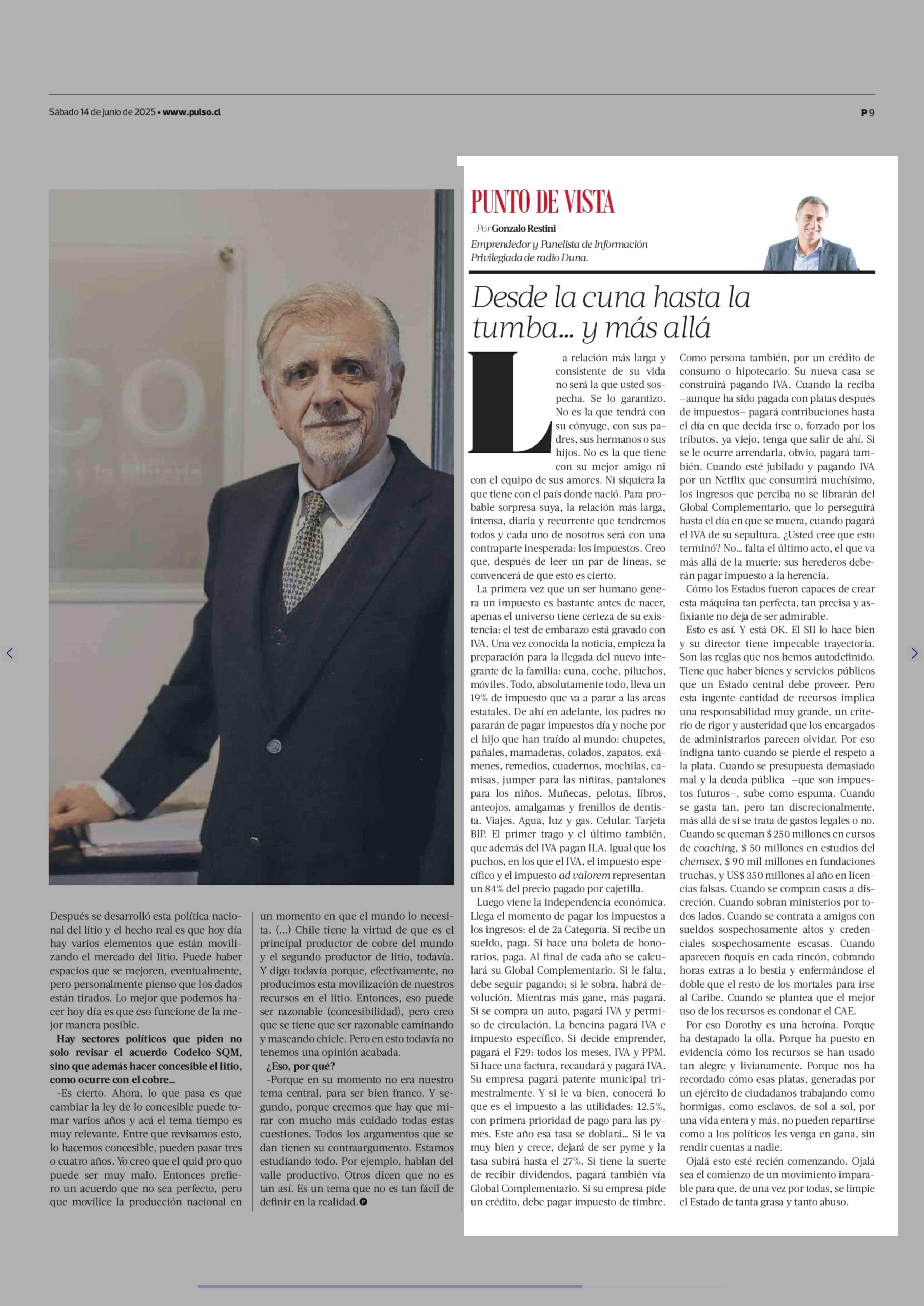 COLUMNAS DE OPINIÓN: Desde la cuna hasta la tumba... y más allá 14-06-2025 La Tercera |