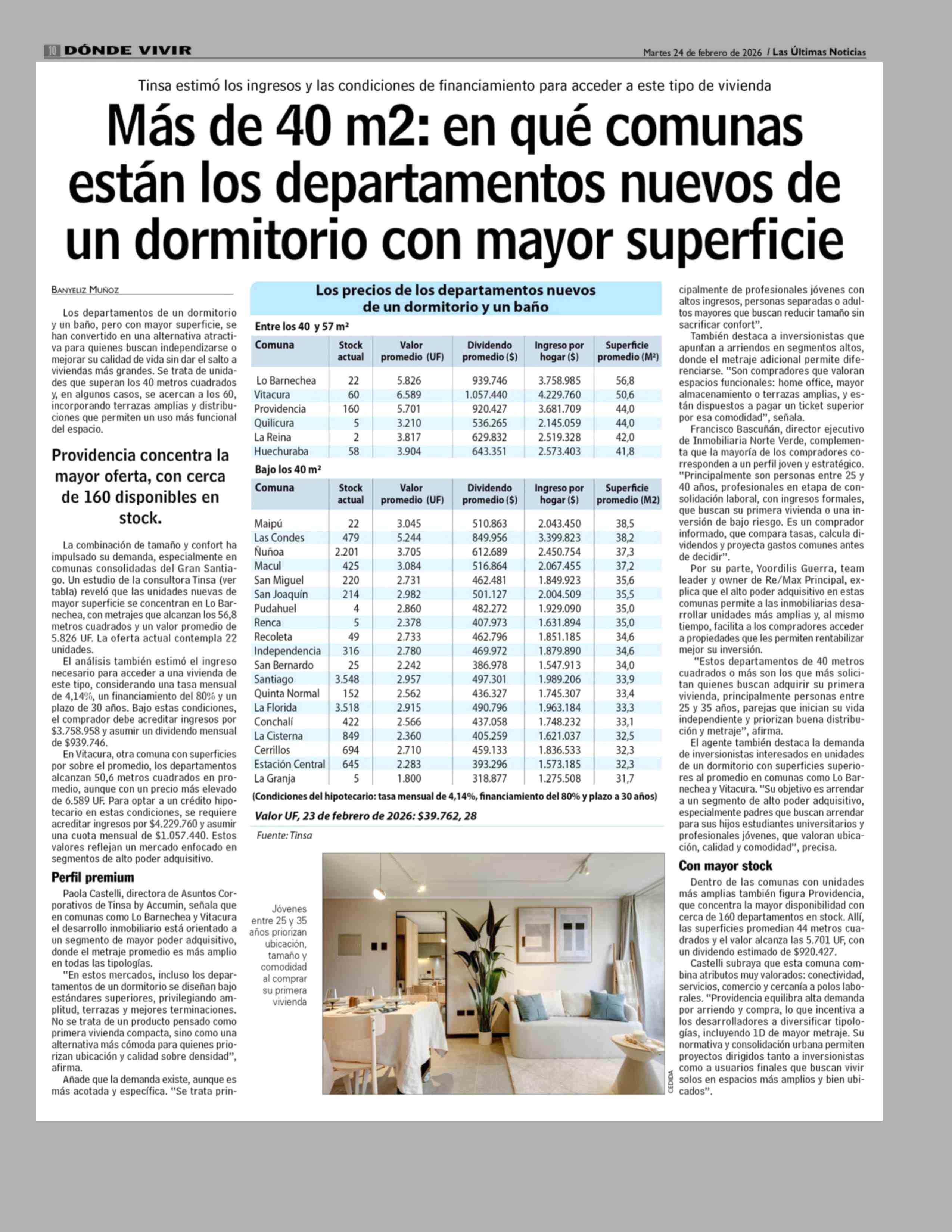 Título: Más de 40 m2: en qué comunas están los departamentos nuevos de un dormitorio con mayor superficie