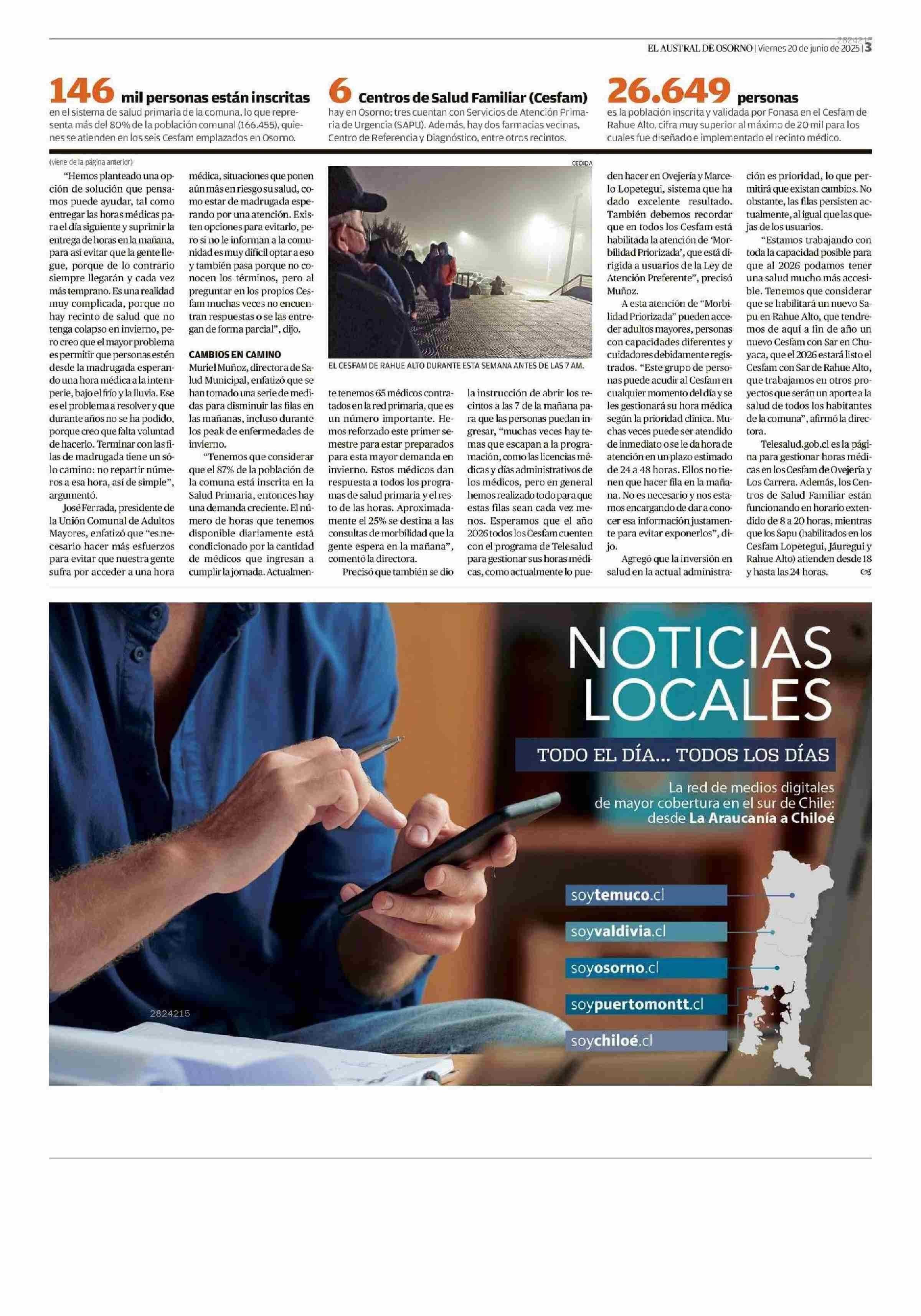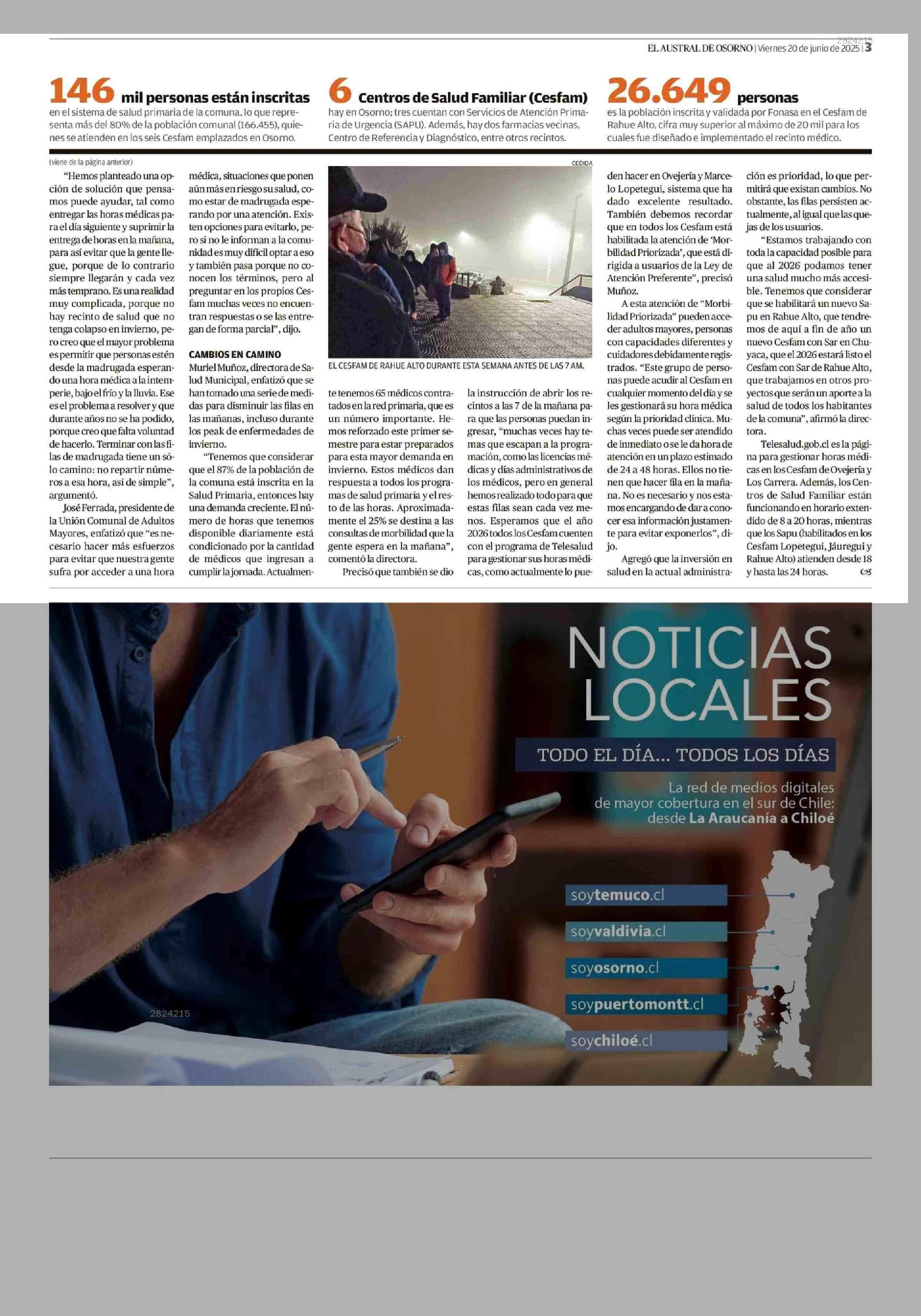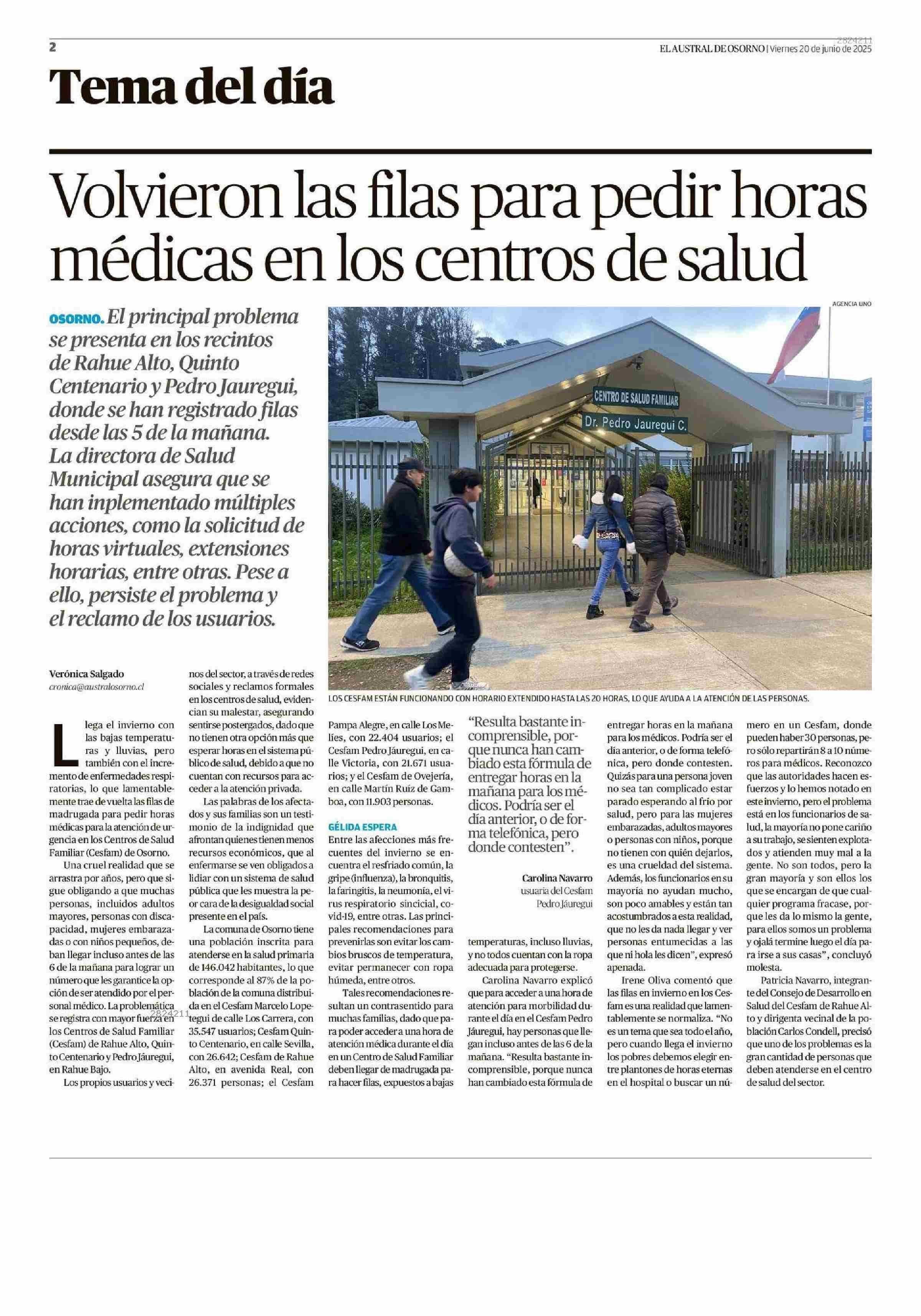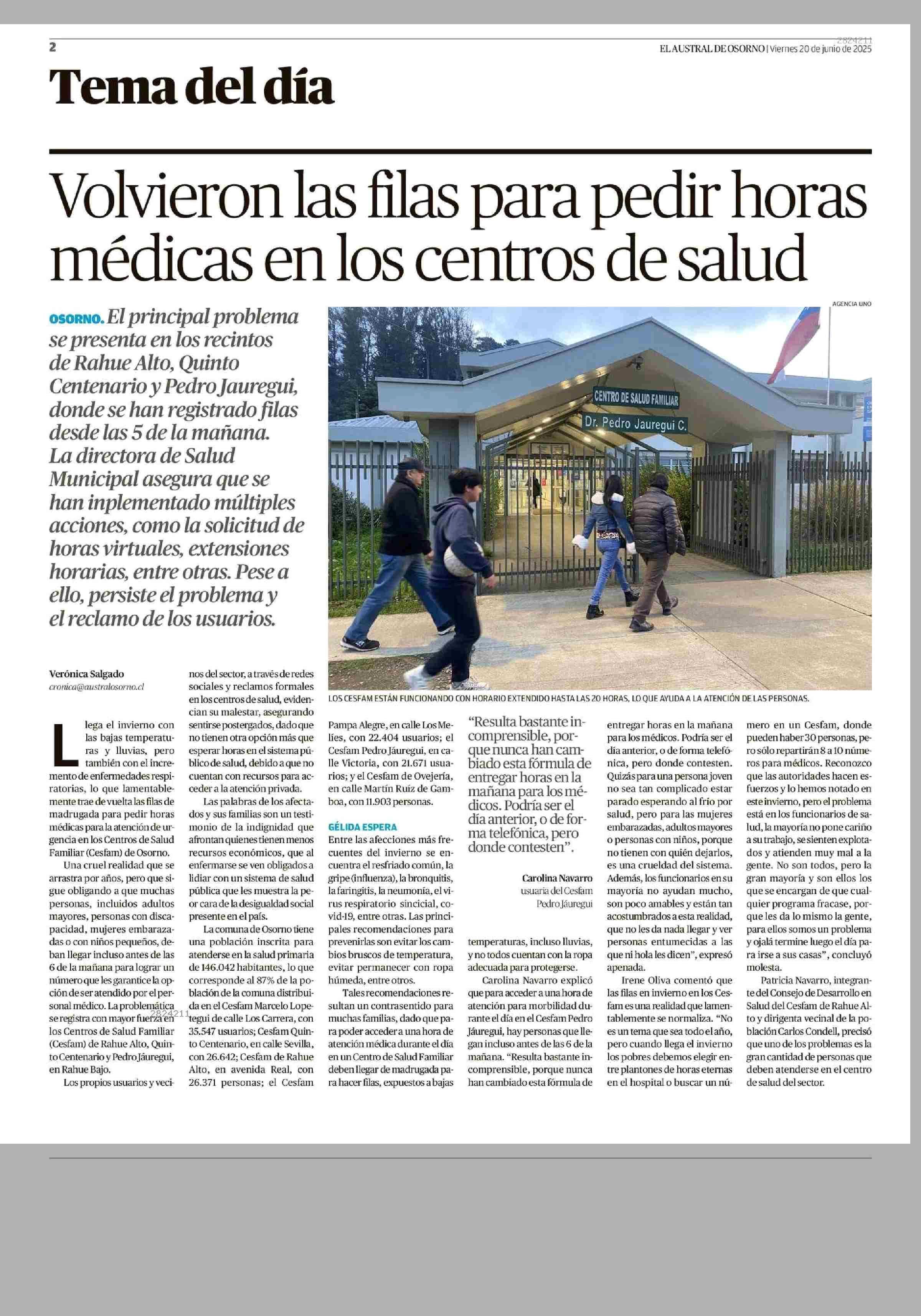Volvieron las filas para pedir horas médicas en los centros de salud 20-06-2025 El Austral de Osorno |