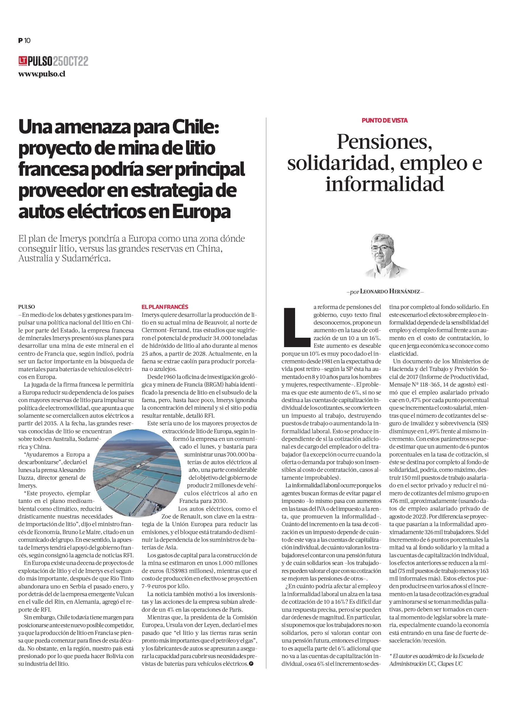 Pensiones, solidaridad, empleo e informalidad 25-10-2022 La Tercera |