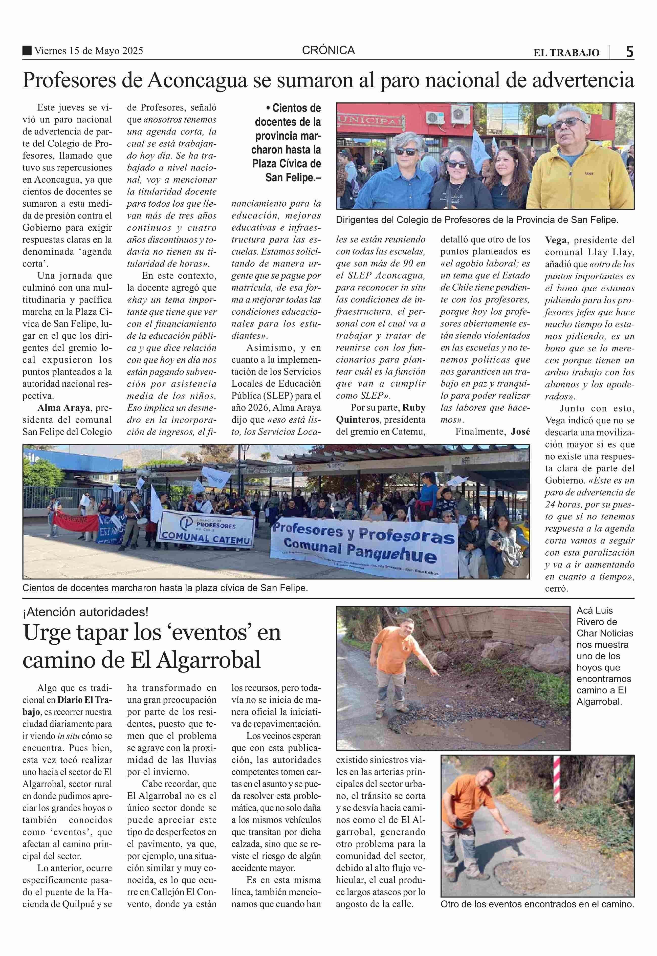 Profesores de Aconcagua se sumaron al paro nacional de advertencia 16-05-2025 El Trabajo |
