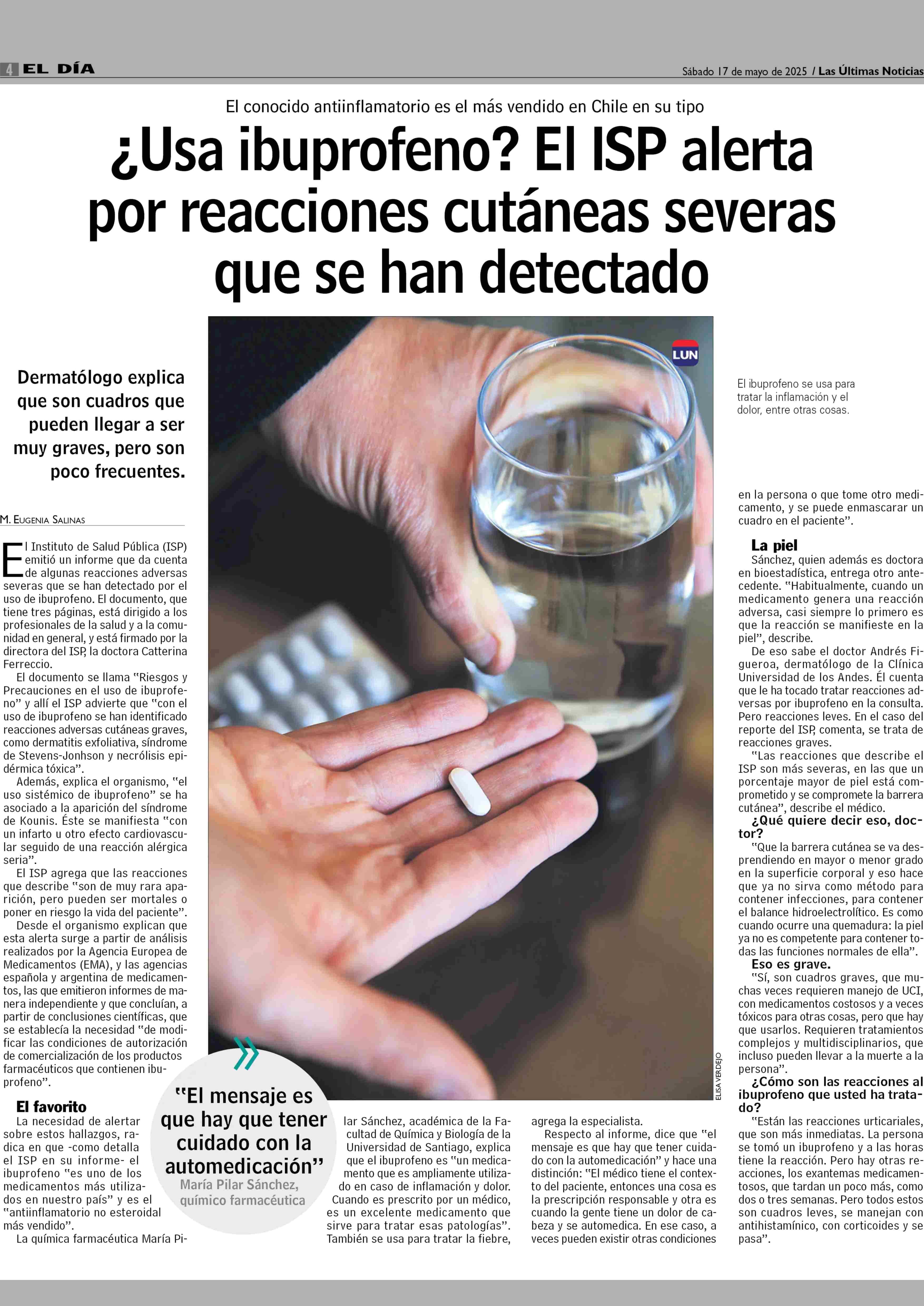 Título: ¿Usa ibuprofeno? El ISP alerta por reacciones cutáneas severas que se han detectado