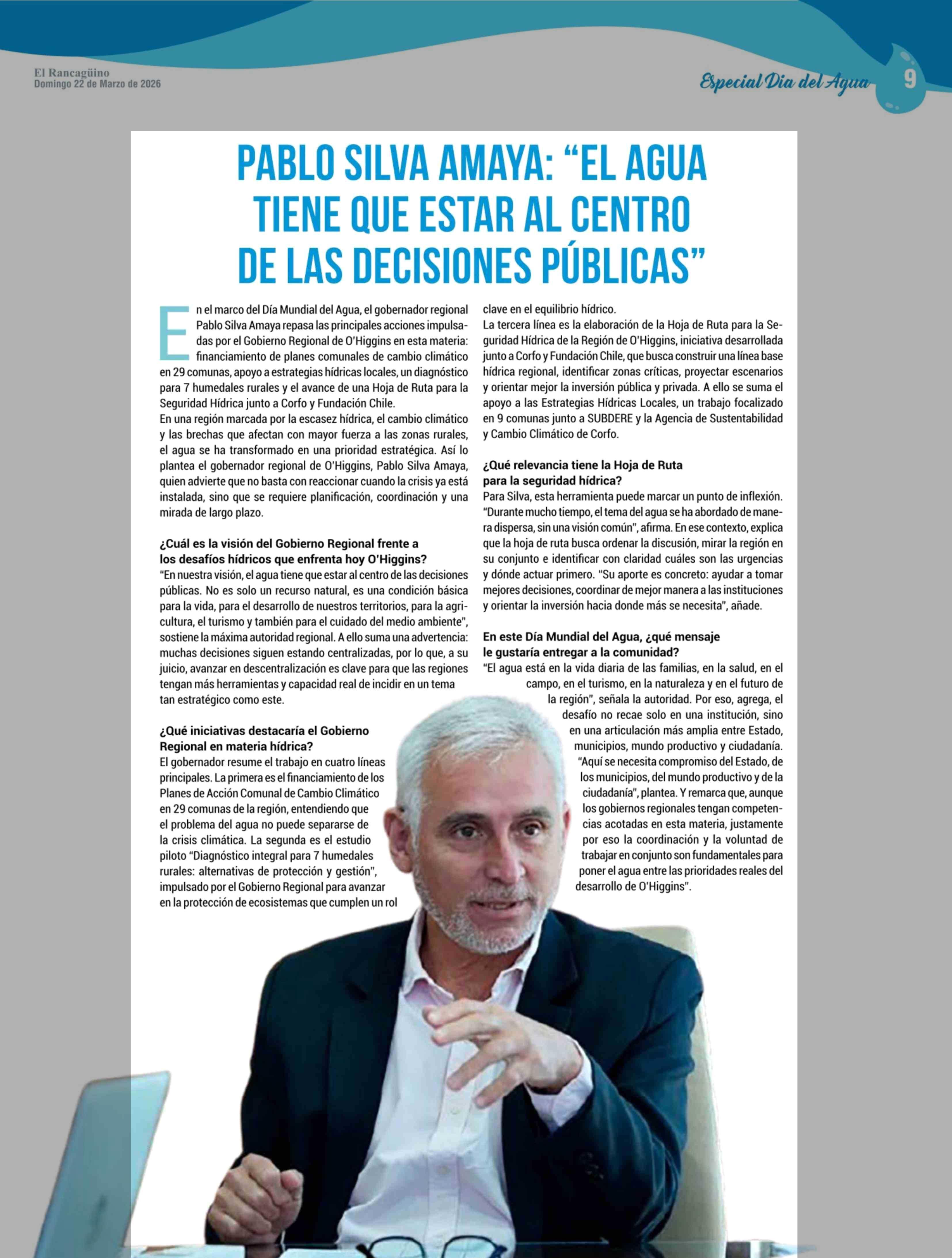 PABLO SILVA AMAYA: "EL AGUA TIENE QUE ESTAR AL CENTRO DE LAS DECISIONES PÚBLICAS" 22-03-2026 El Rancagüino |