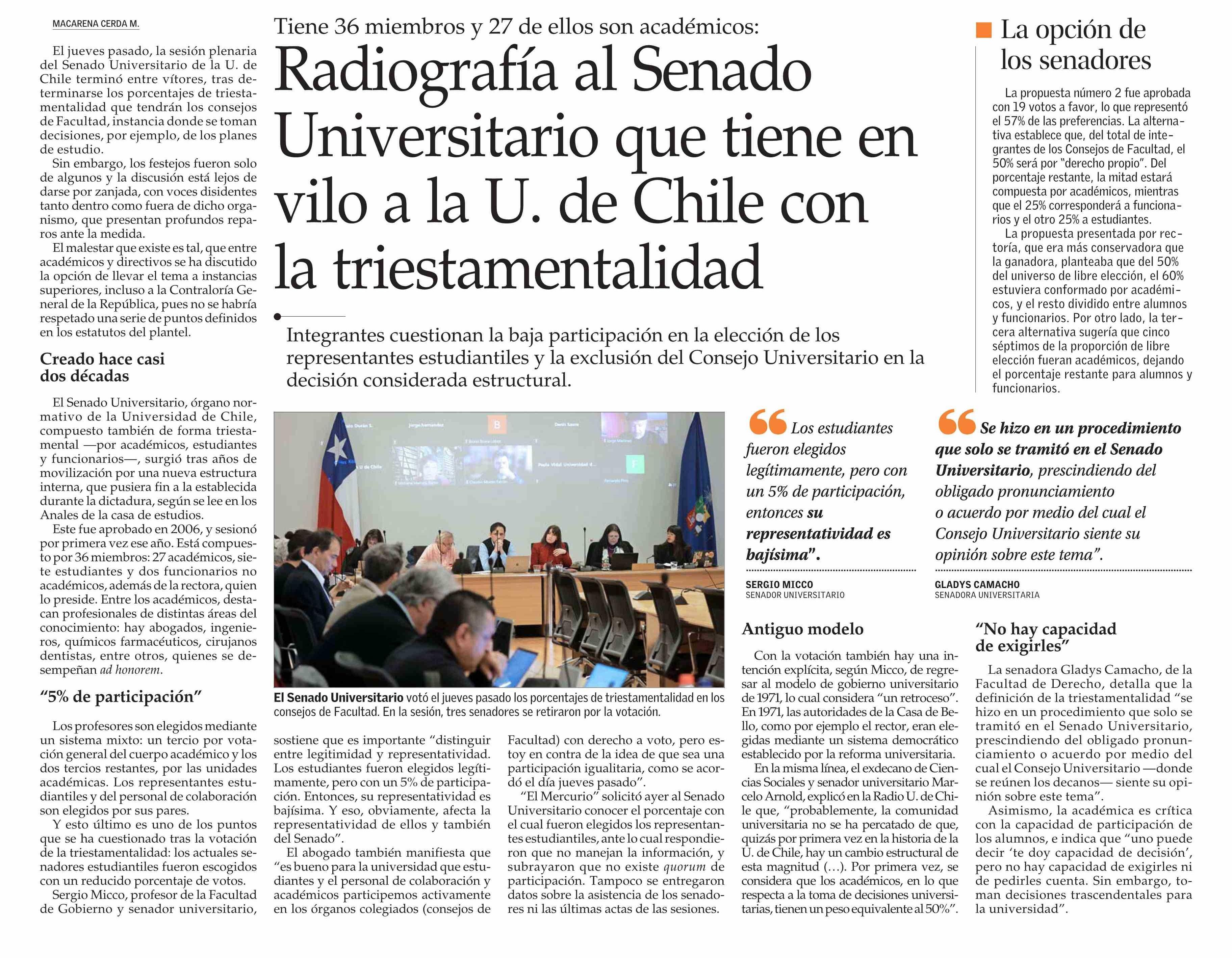 Radiografía al Senado Universitario que tiene en vilo a la U. de Chile con la triestamentalidad 28-05-2025 El Mercurio |