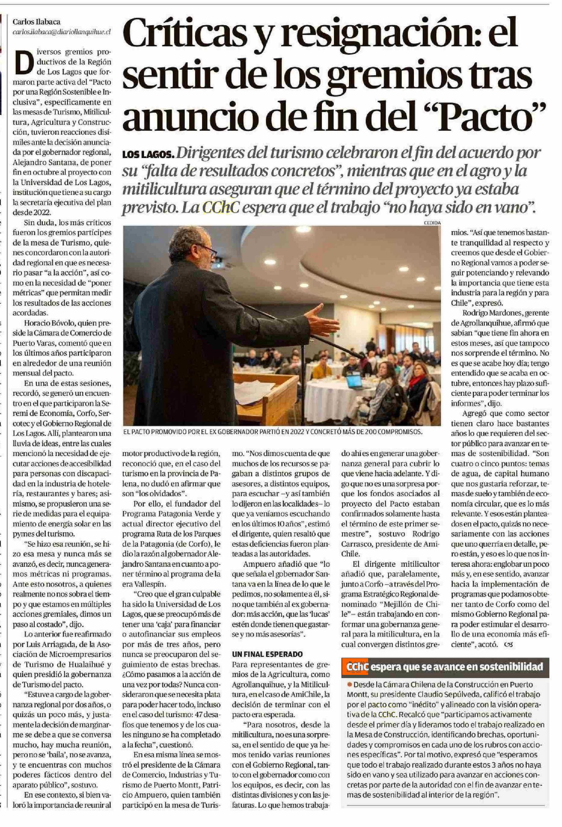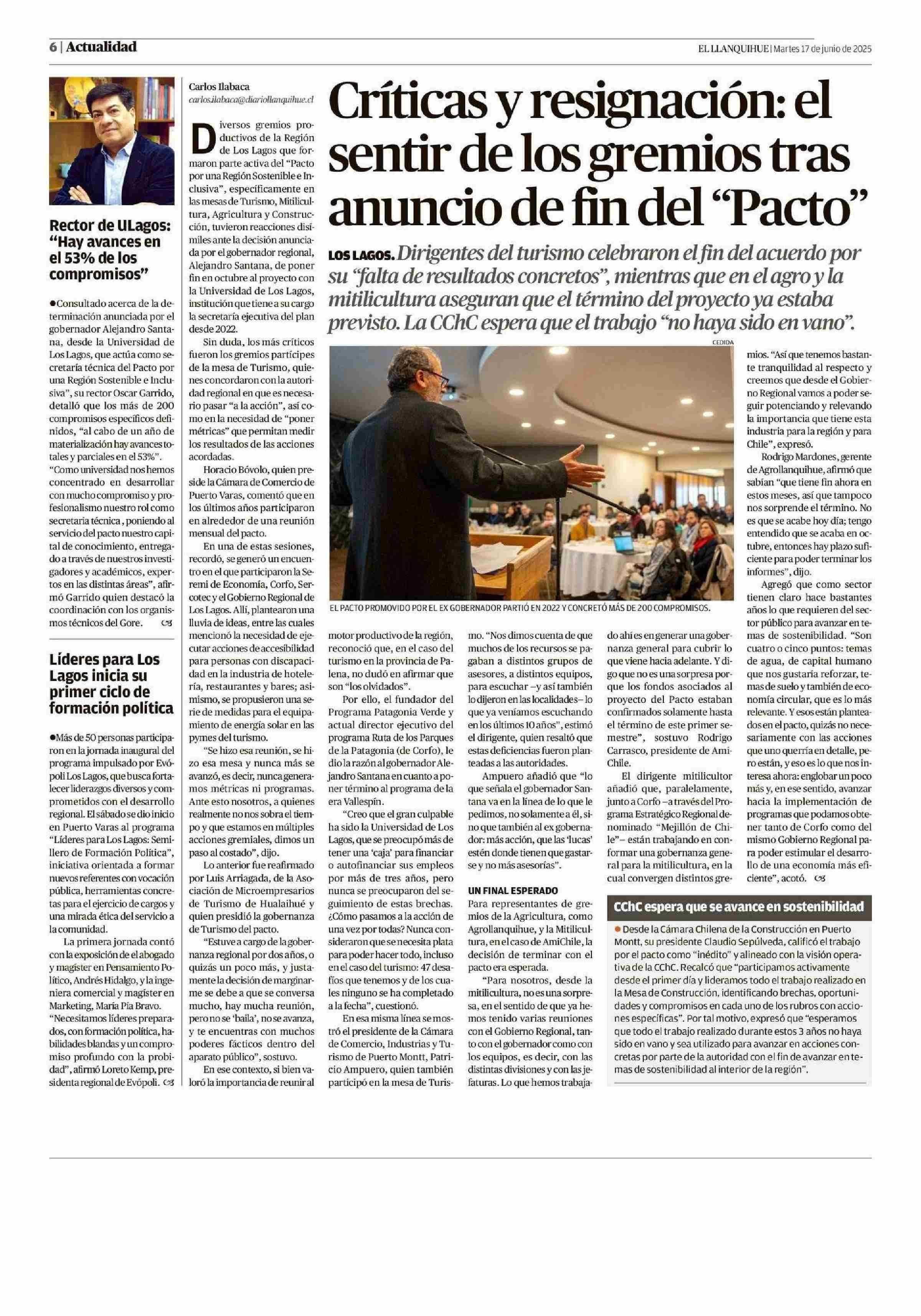 Críticas y resignación: el sentir de los gremios tras anuncio de fin del "Pacto" 17-06-2025 El Llanquihue |