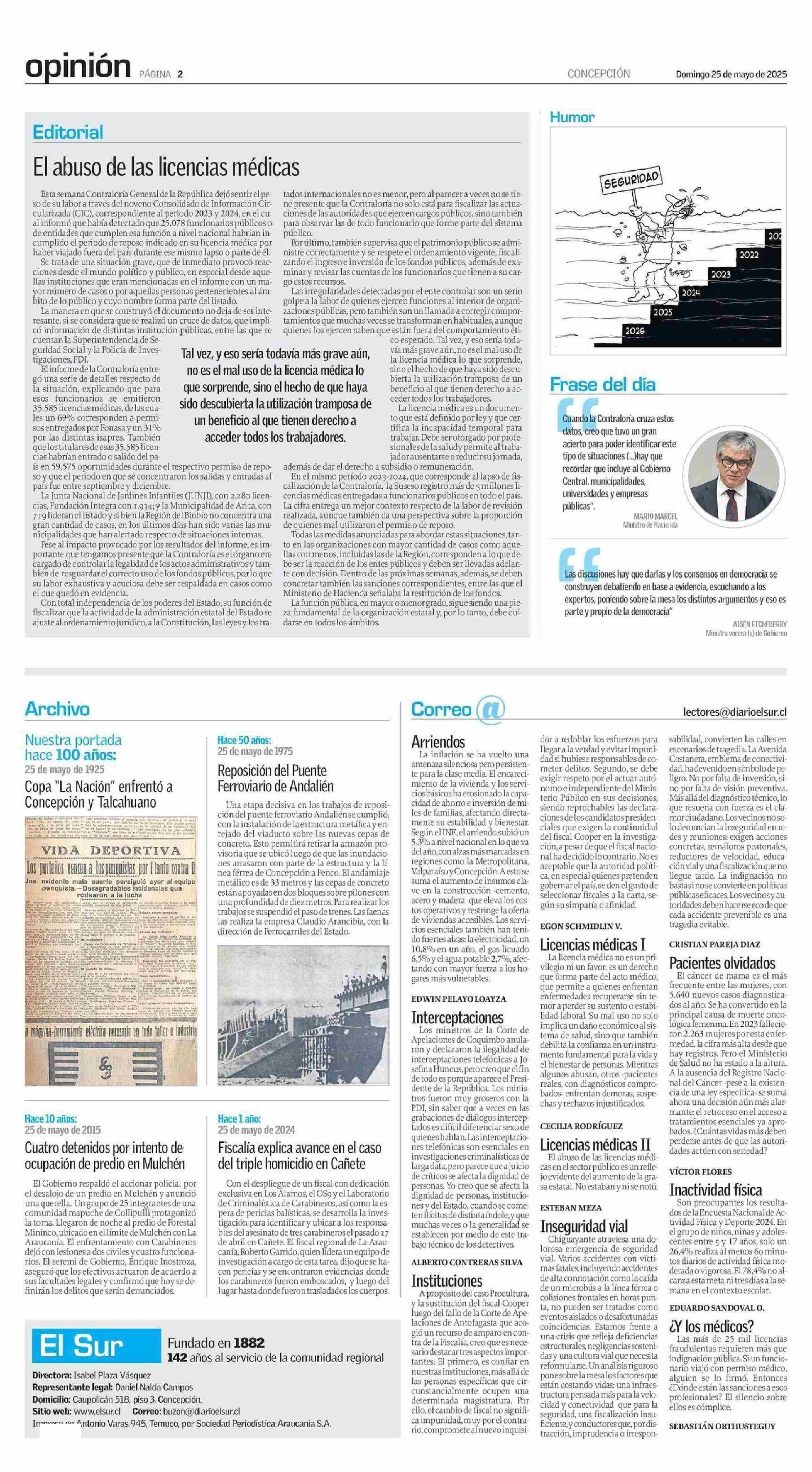 CARTAS: CORREOS 25-05-2025 El Sur |