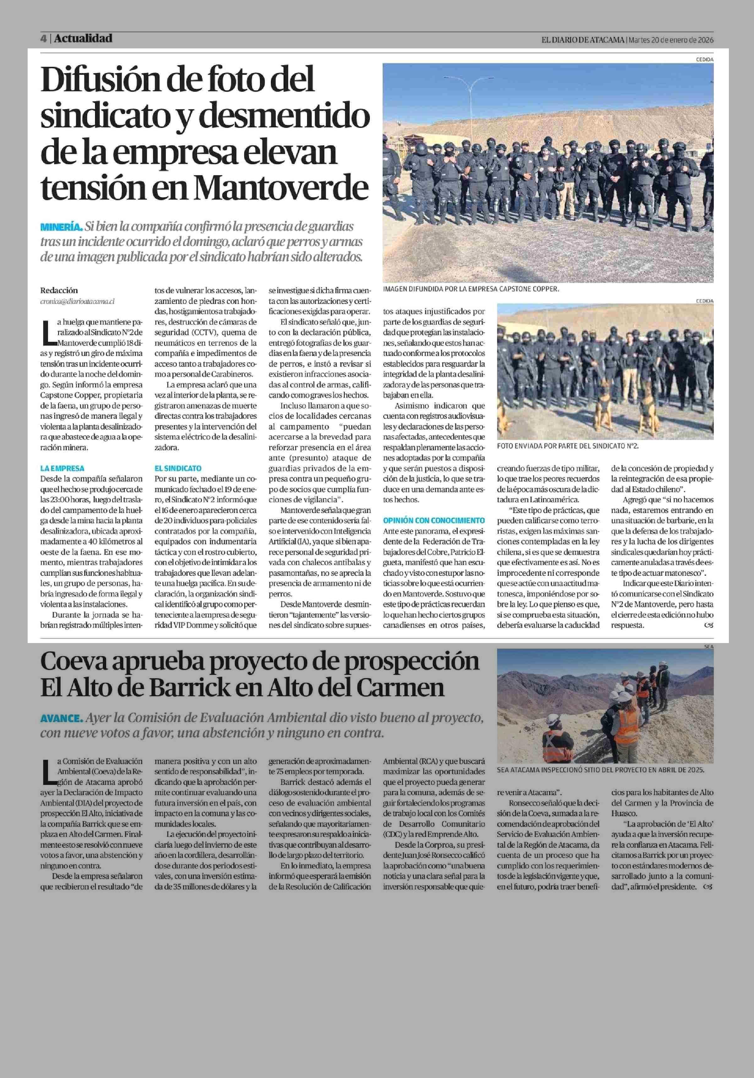 Fuente: El Diario de Atacama (El Diario de Atacama) Página(s): 4