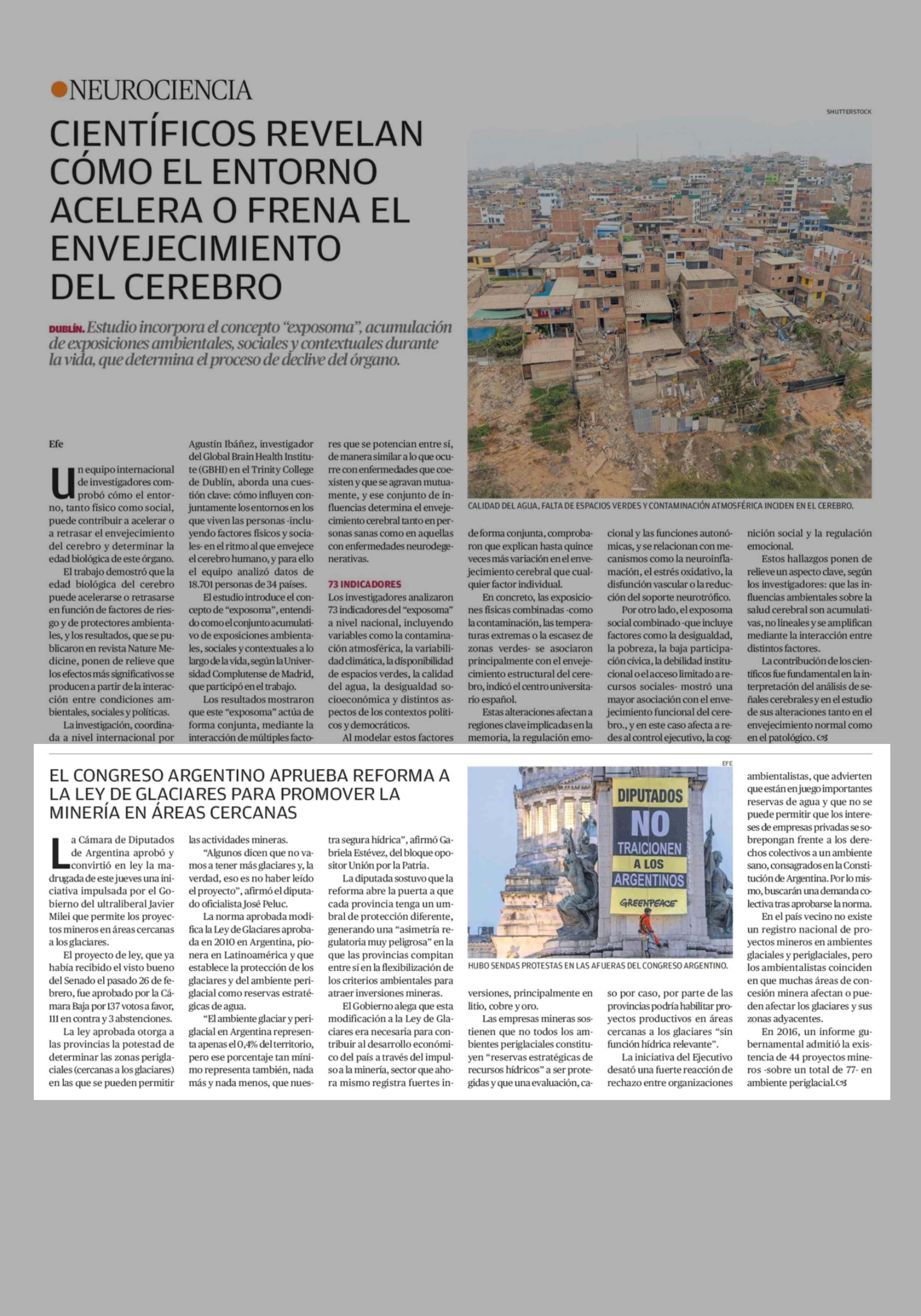 EL CONGRESO ARGENTINO APRUEBA REFORMA ALA LEY DE GLACIARES PARA PROMOVER LA MINERÍA EN ÁREAS CERCANAS 12-04-2026 El Mercurio de Antofagasta |