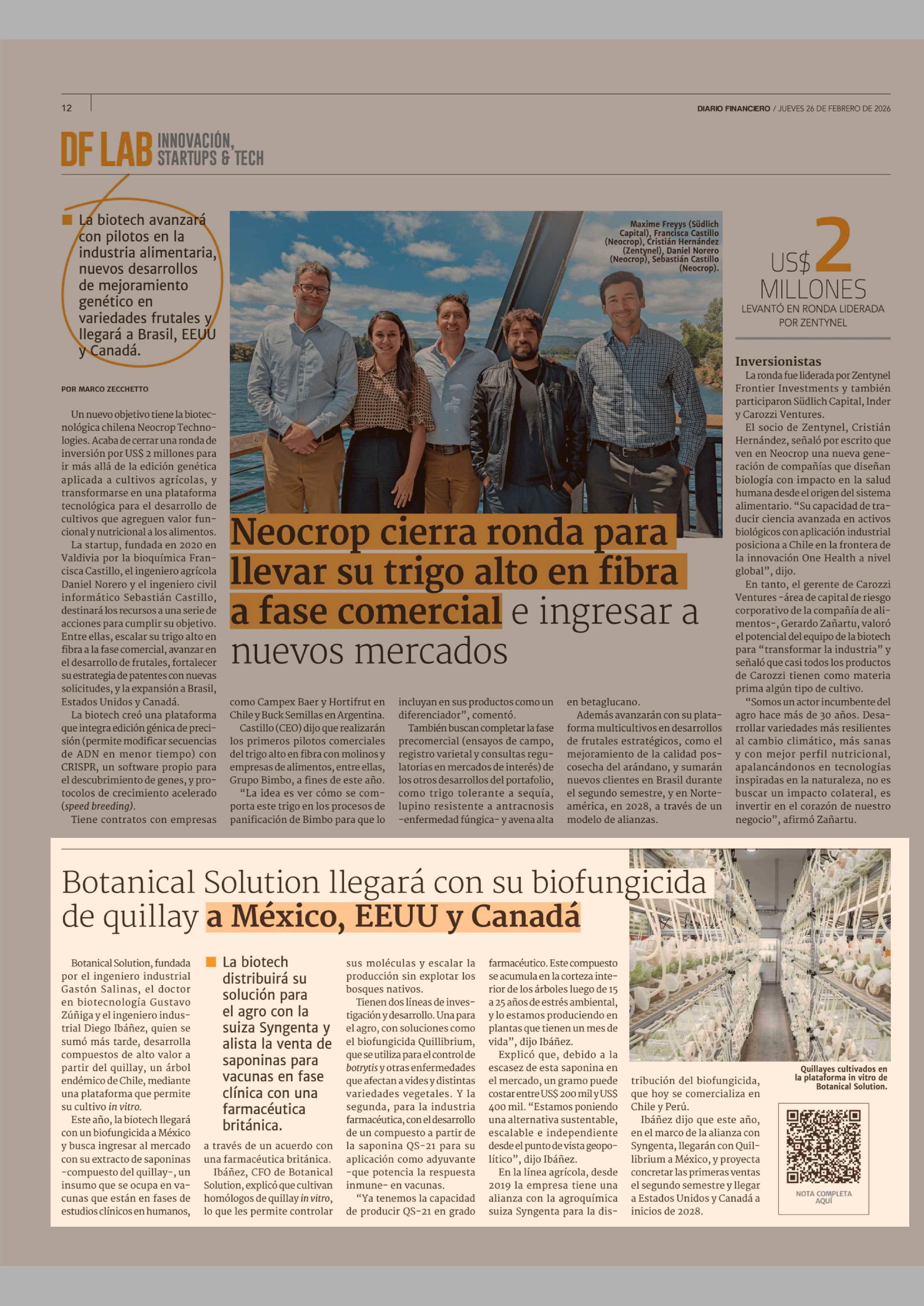 Botanical Solution llegará con su biofungicida de quillay a México, EEUU y Canadá 26-02-2026 Diario Financiero |
