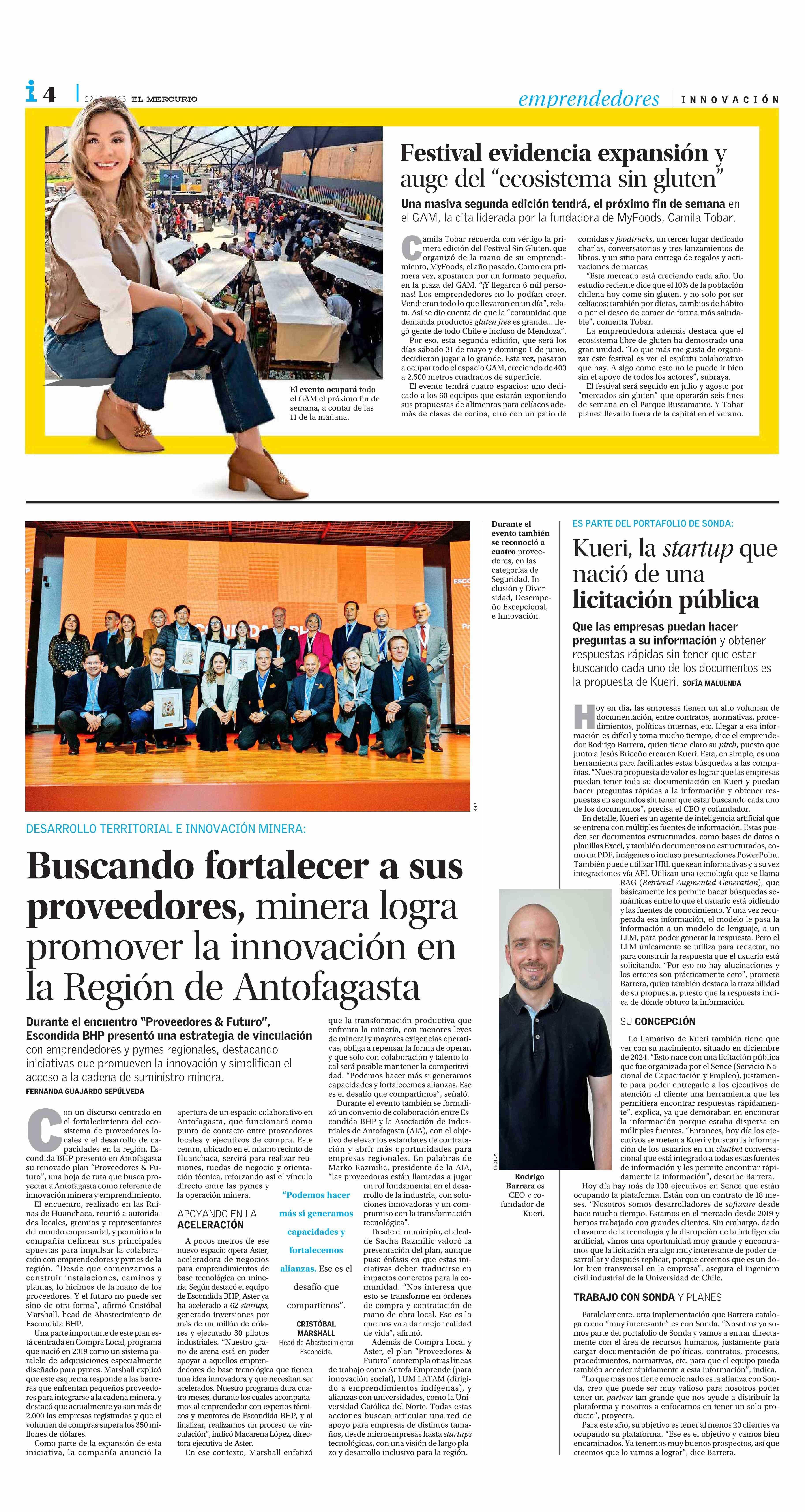 Buscando fortalecer a sus proveedores, minera logra promover la innovación en la Región de Antofagasta 22-05-2025 El Mercurio |