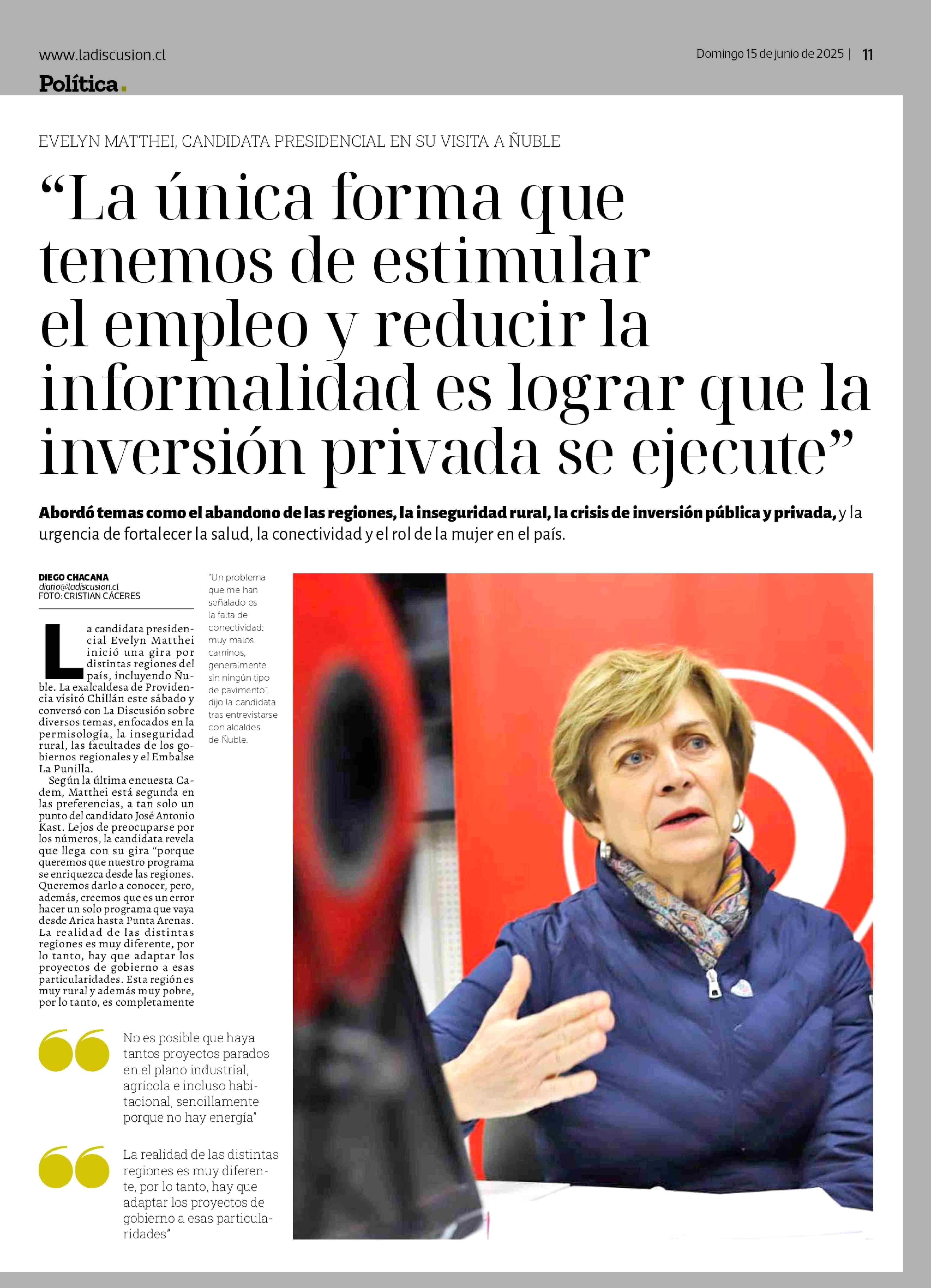 “La única forma que tenemos de estimular el empleo y reducir la informalidad es lograr que la Inversión privada se ejecute” 15-06-2025 La Discusión |