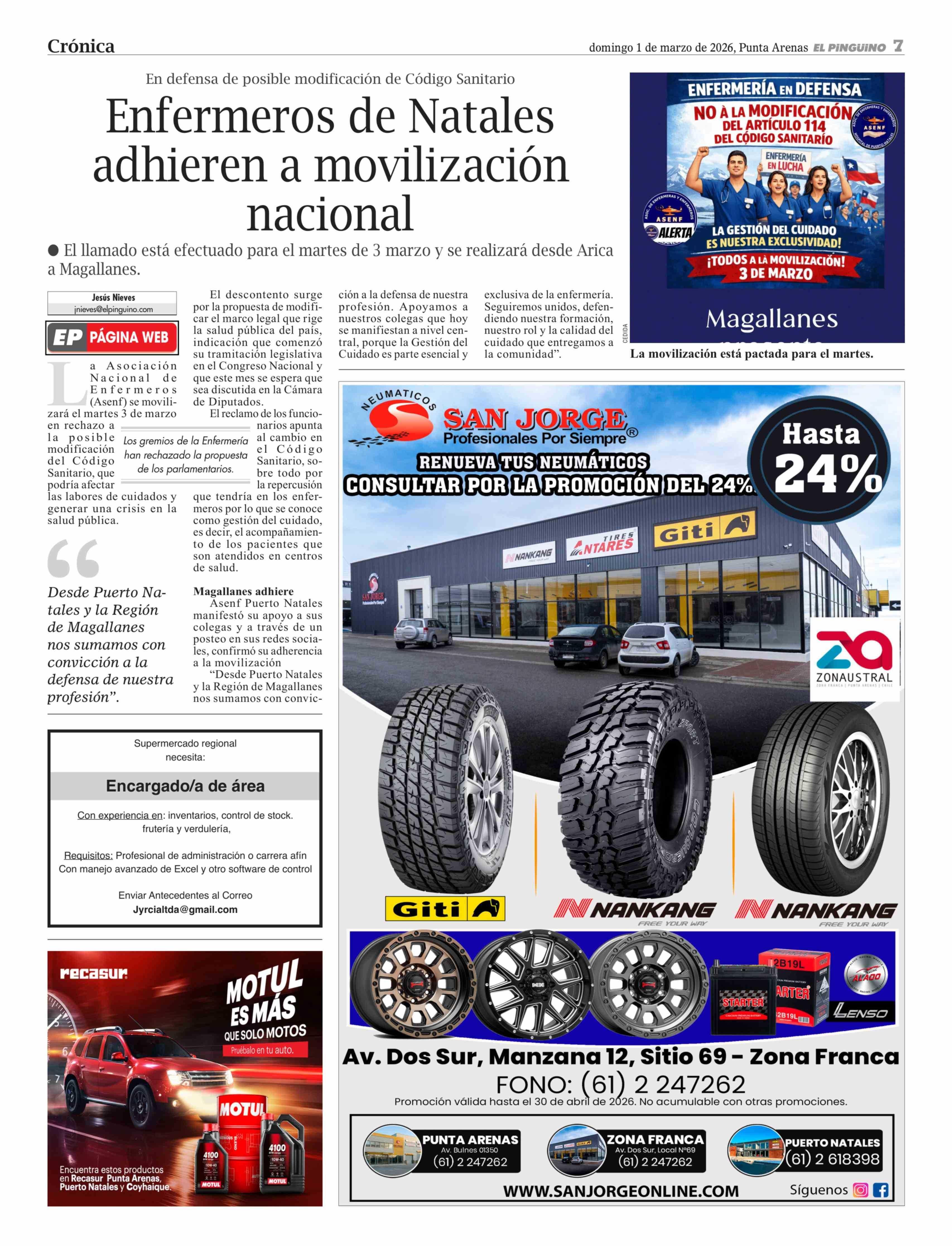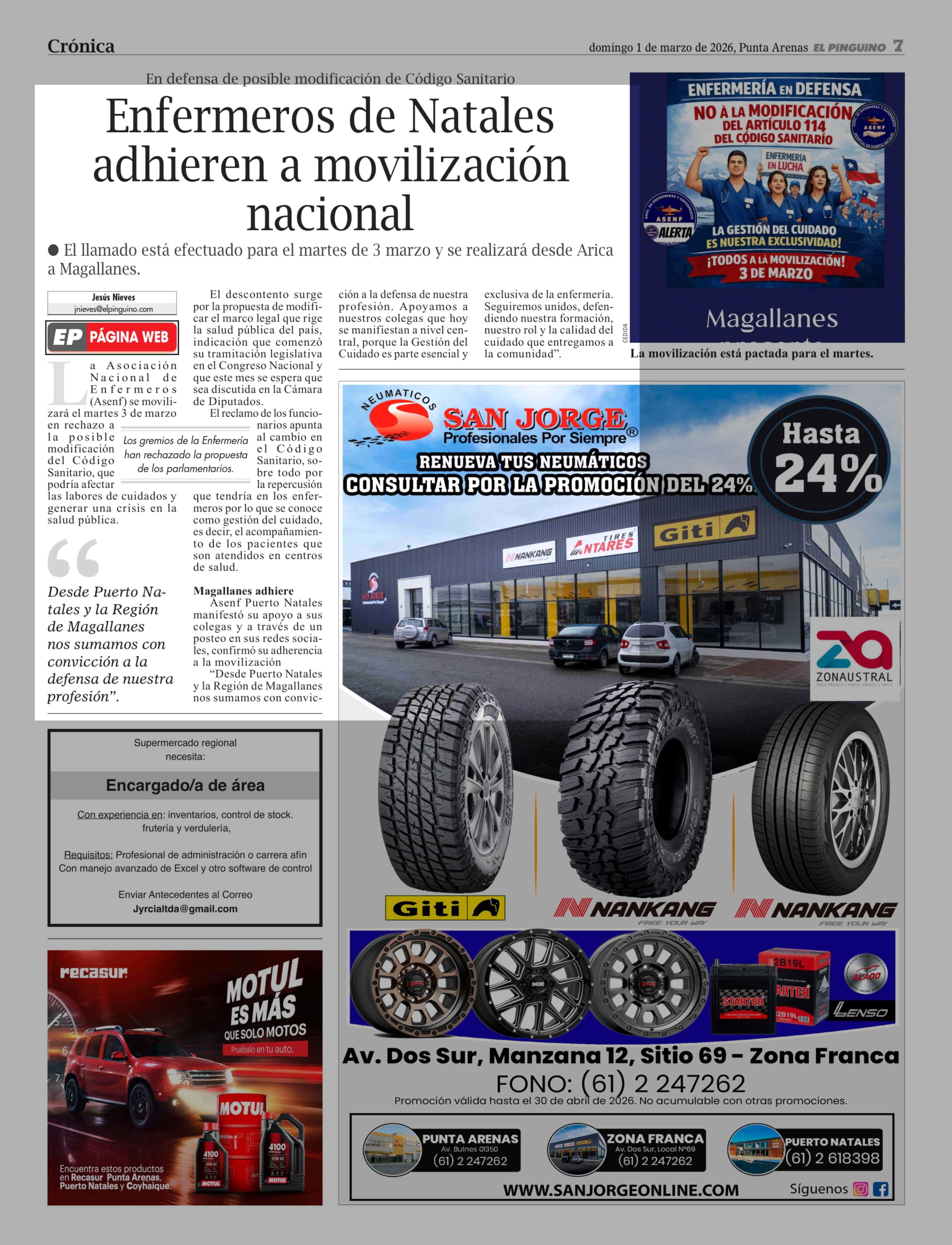 Enfermeros de Natales adhieren a movilización nacional 01-03-2026 El Pingüino |