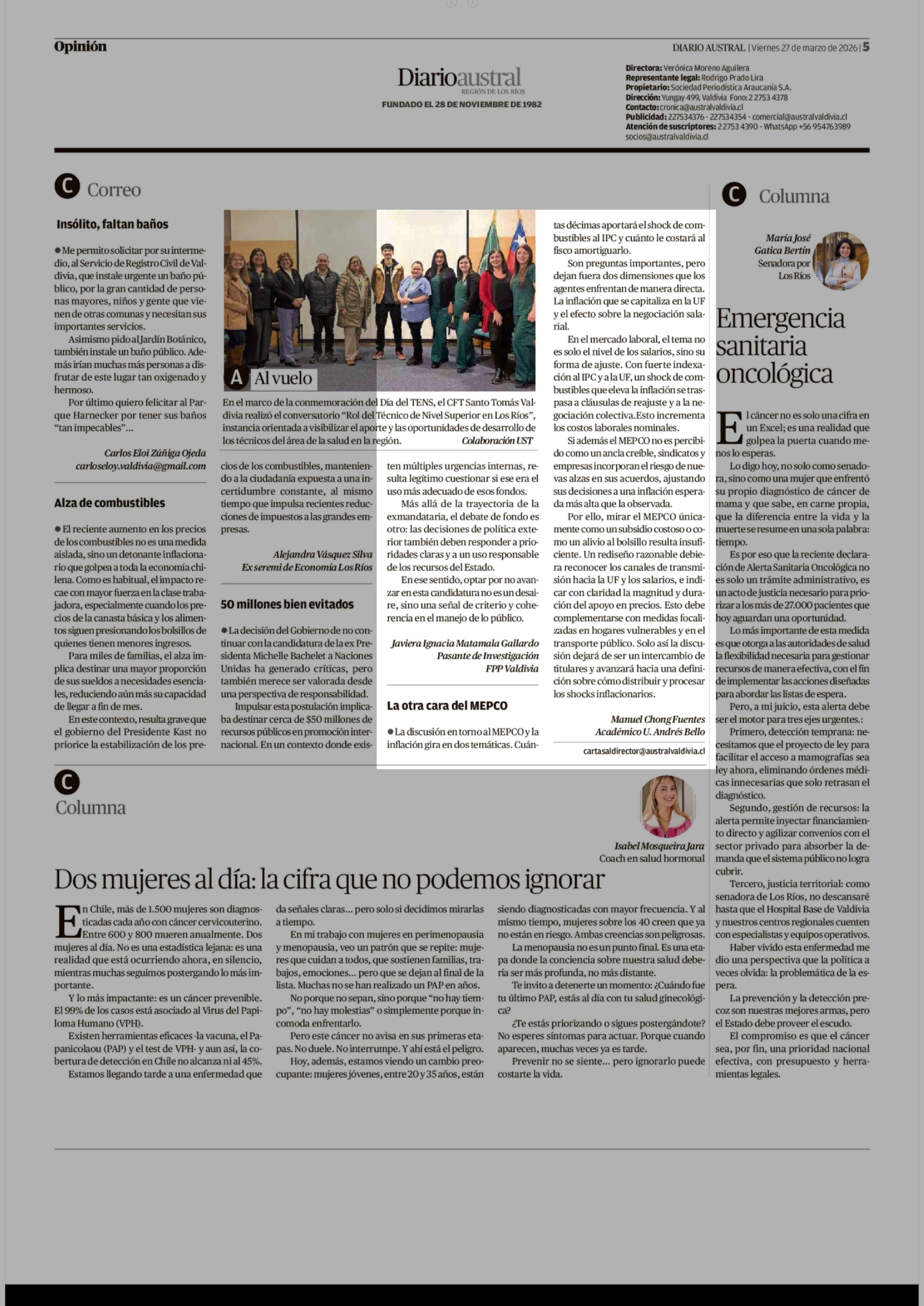 Cartas: La otra cara del MEPCO 27-03-2026 Diario Austral Región de Los Ríos |