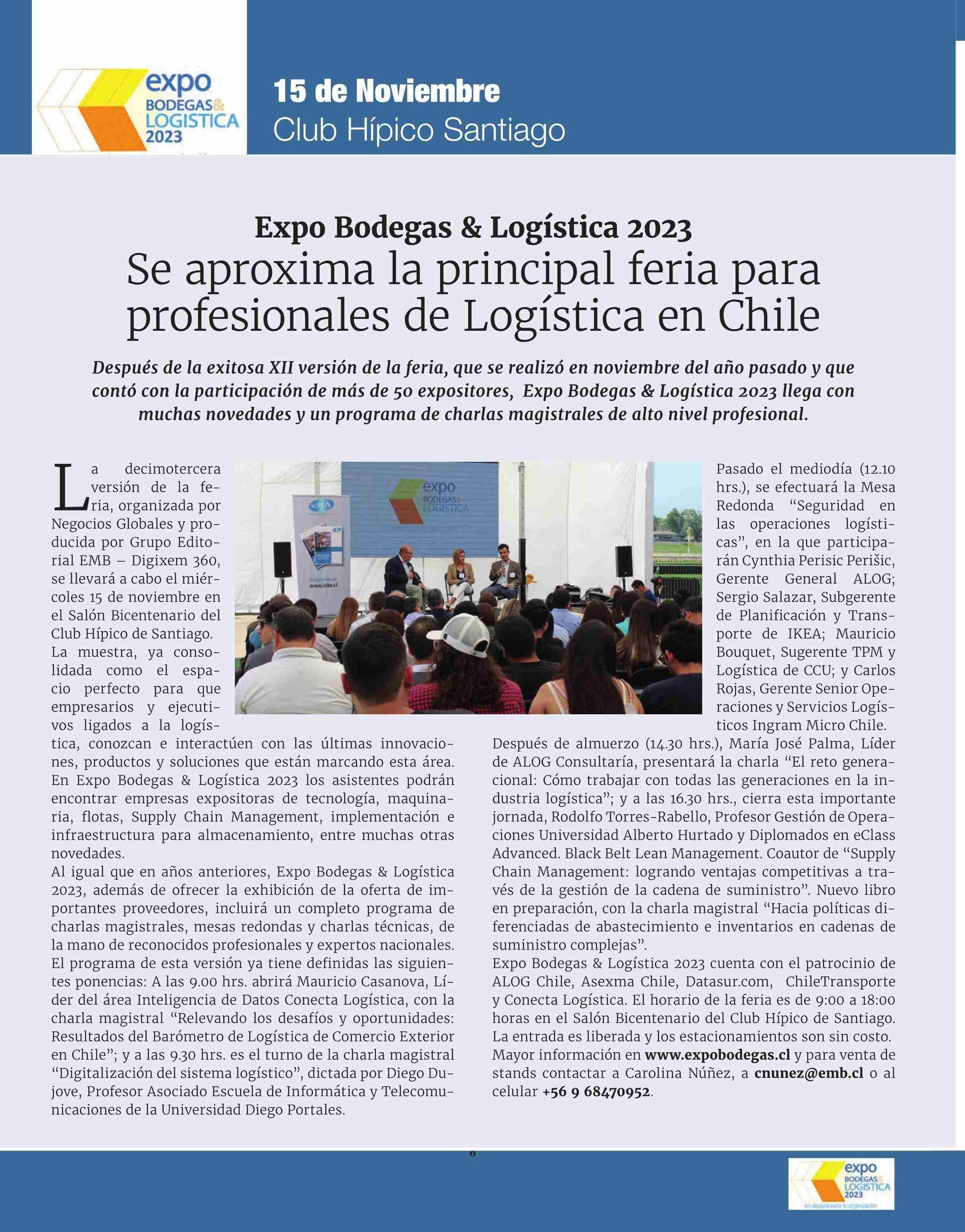 Se aproxima la principal feria para profesionales de Logística en Chile 22-09-2023 Revista NG |