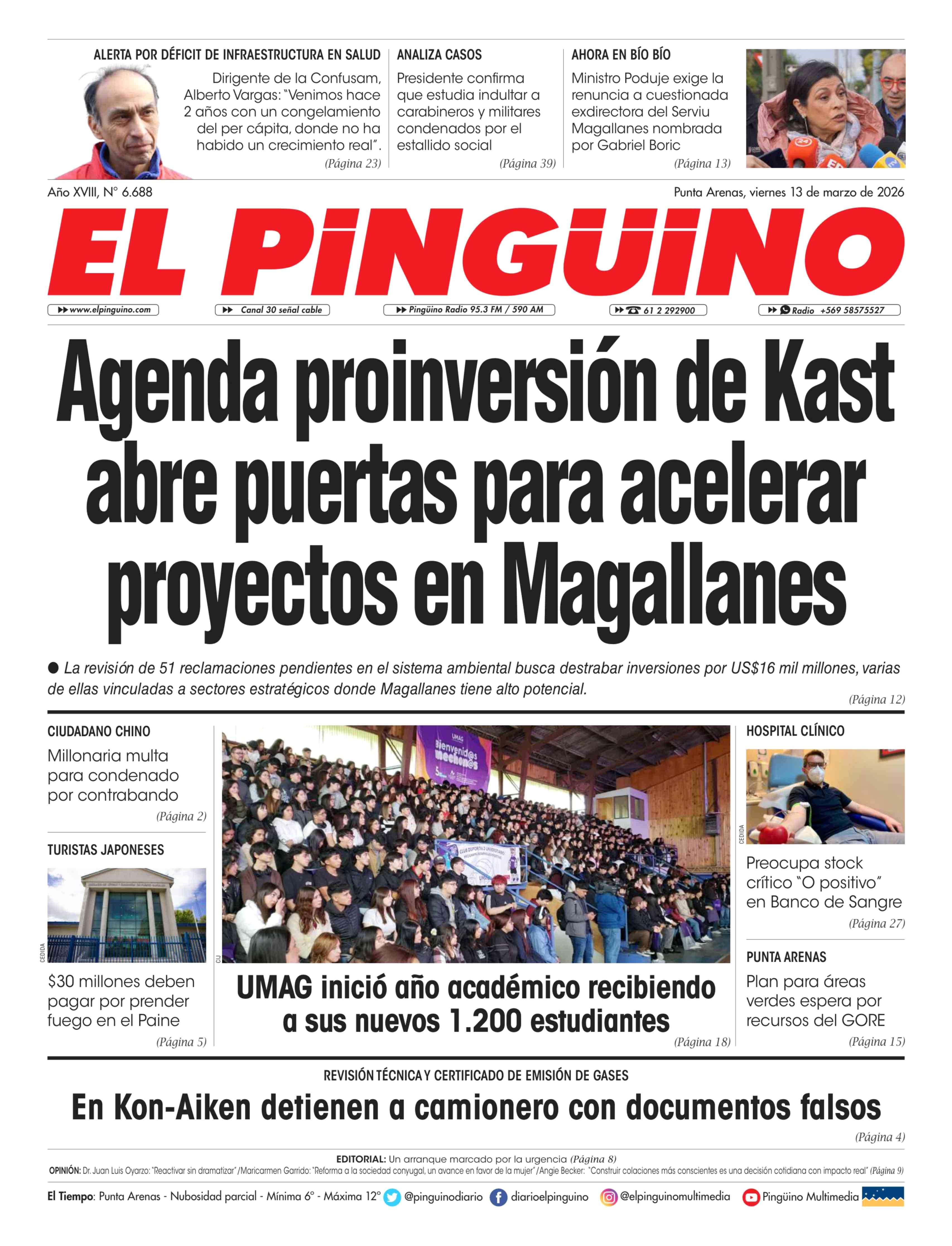 | Fecha: | 13-03-2026 | Sector: | Portada | Región: | Región de Magallanes y de la Antártica Chilena |