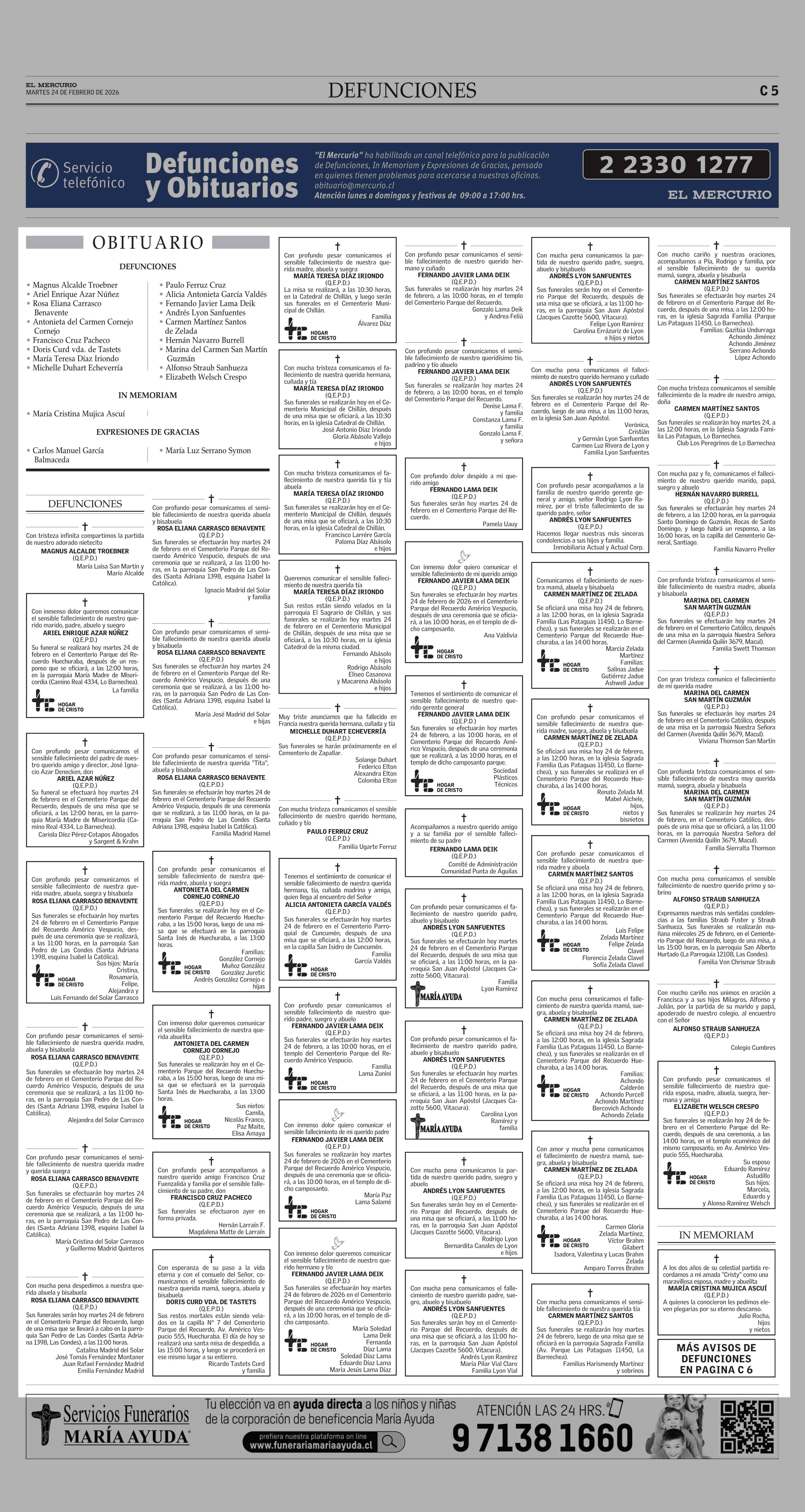 OBITUARIO 24-02-2026 El Mercurio |