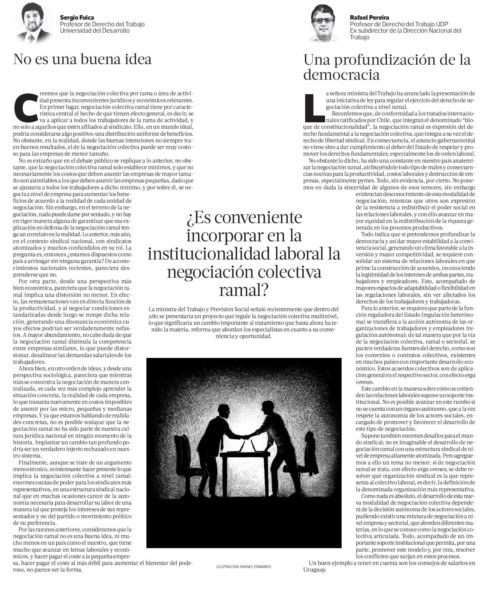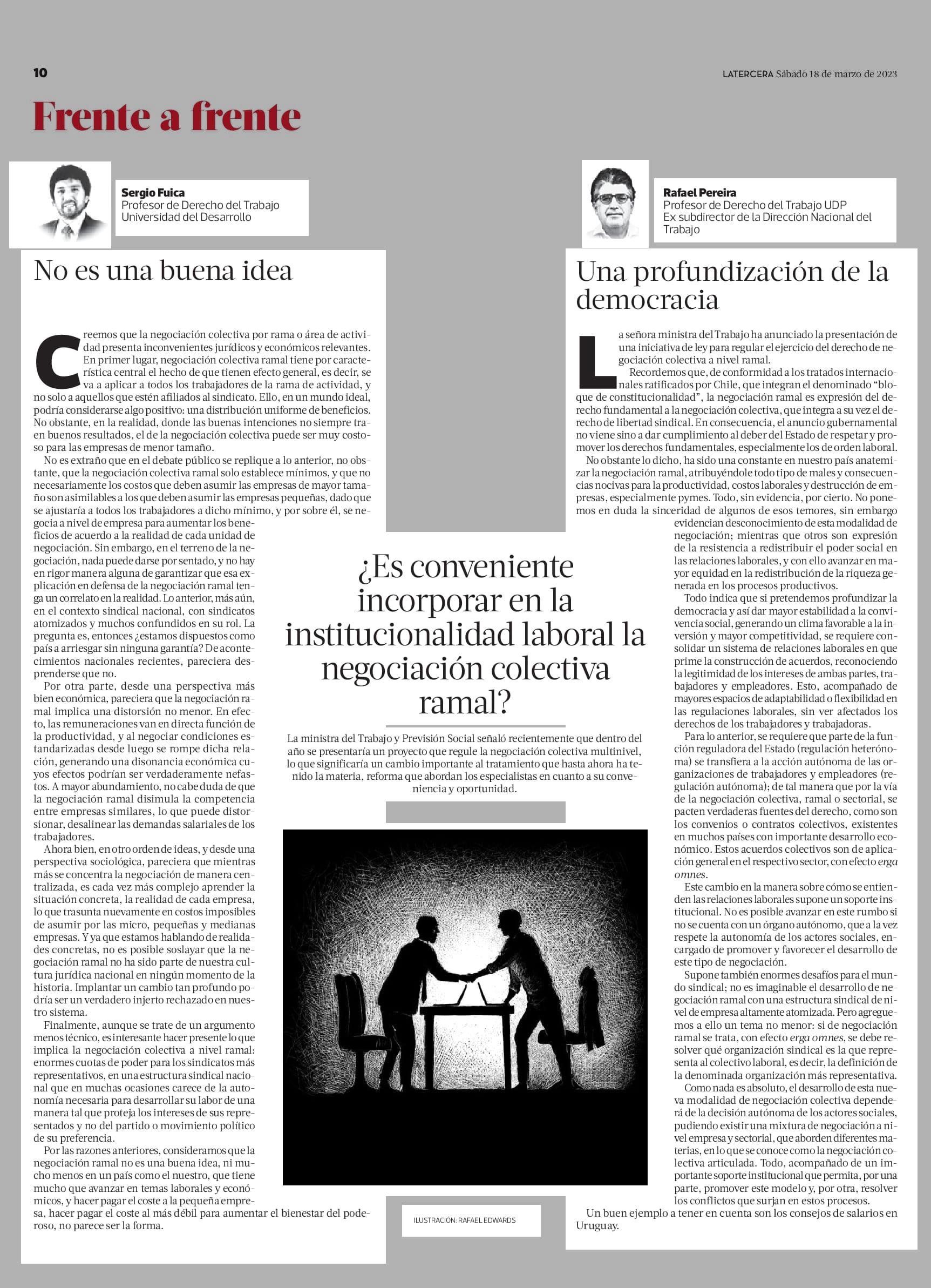 ¿ Es conveniente incorporar en la institucionalidad laboral la negociación colectiva ramal? 18-03-2023 La Tercera |