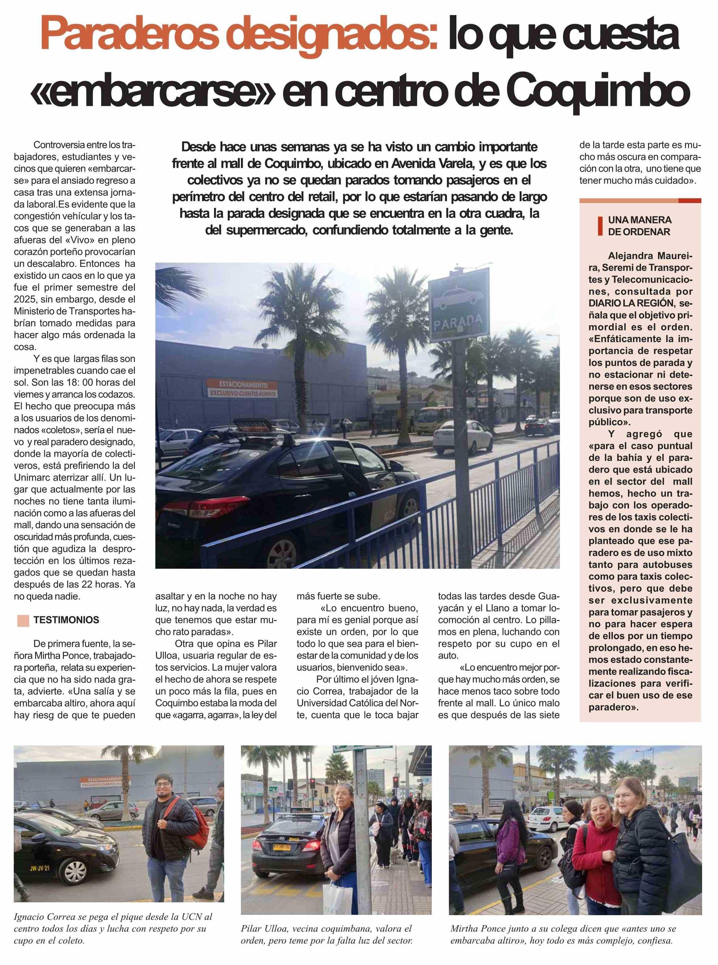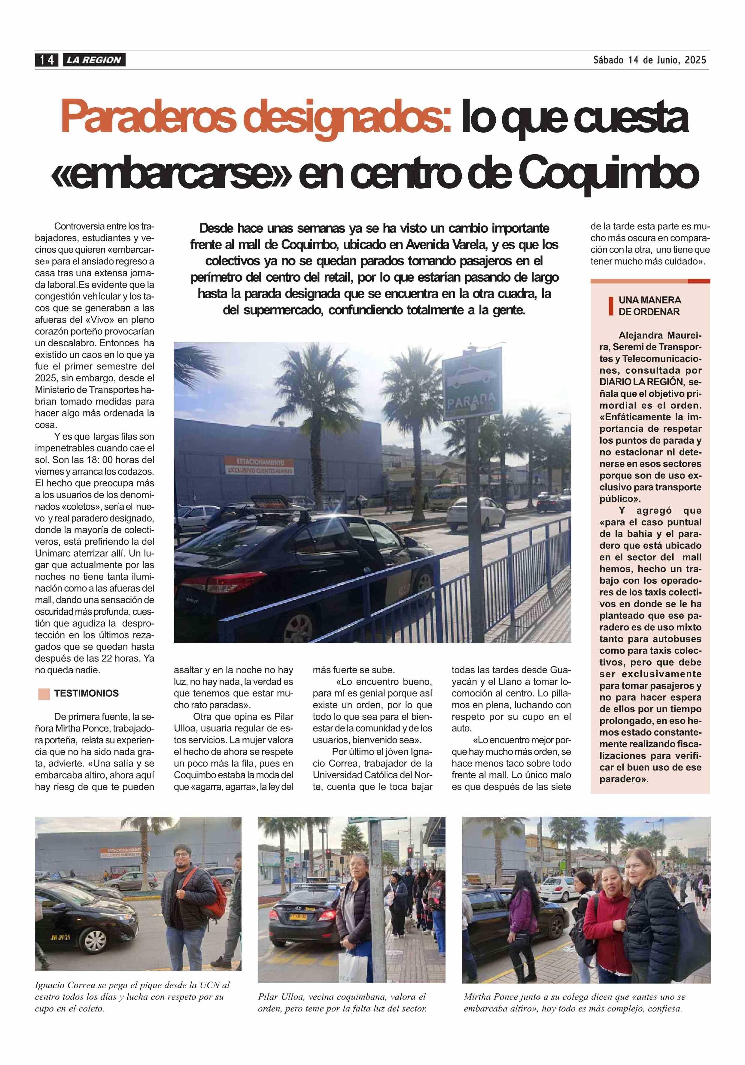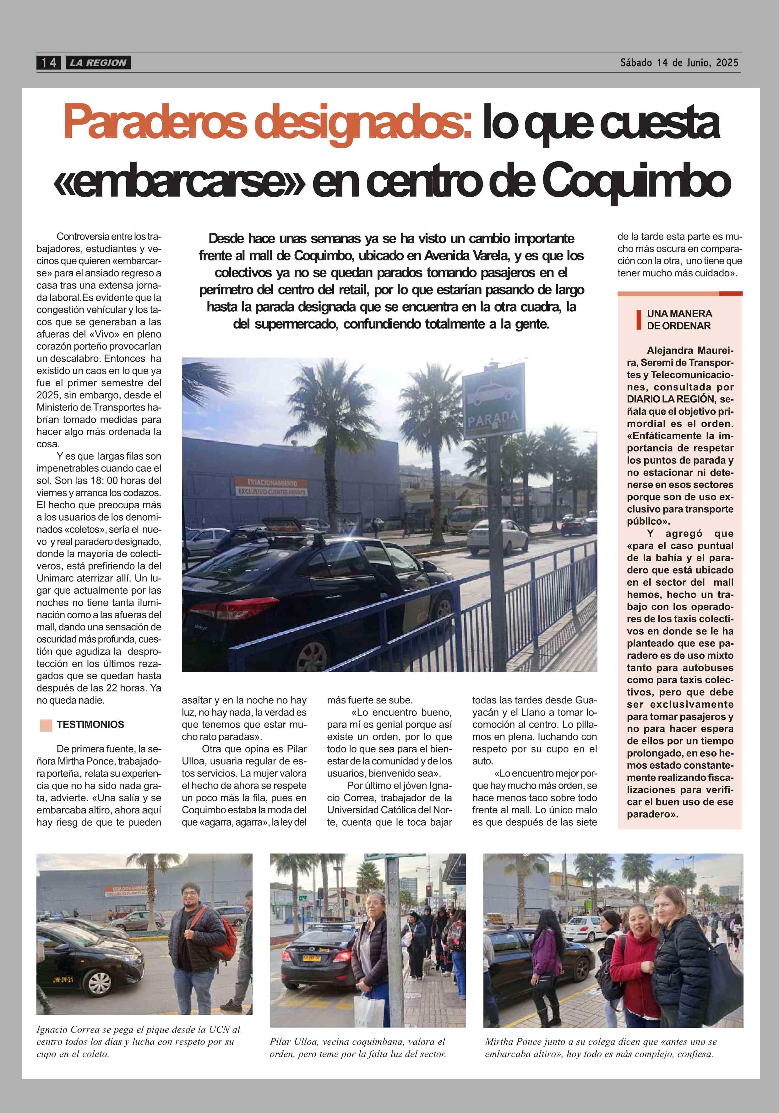 Paraderos designados: lo que cuesta «embarcarse» en centro de Coquimbo 14-06-2025 Diario la Región |