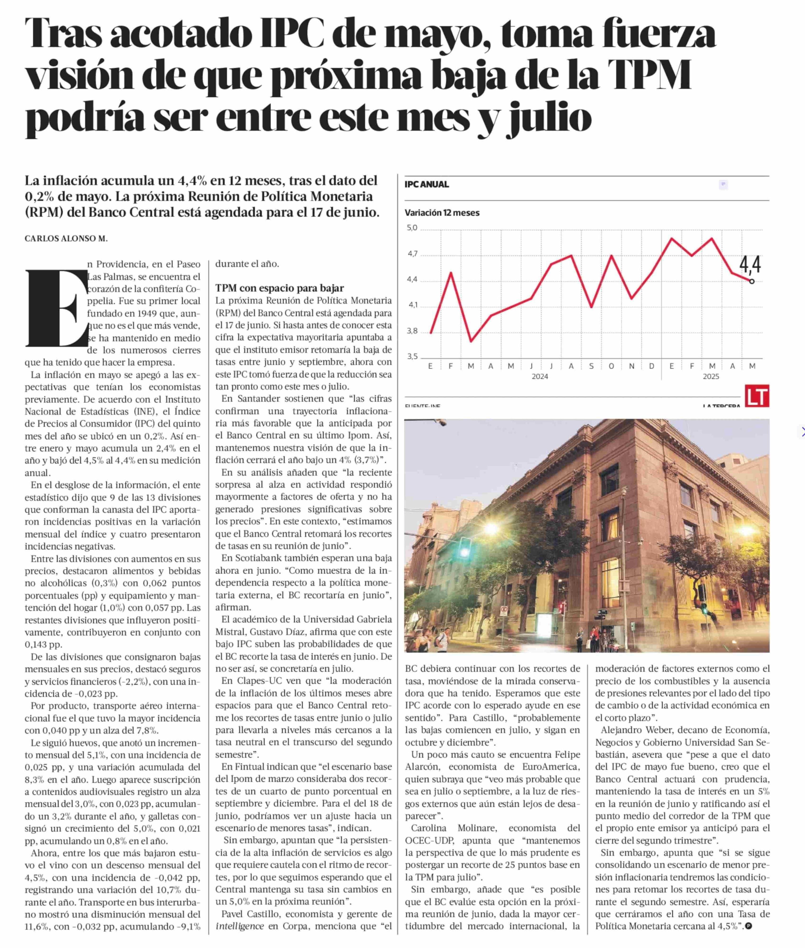 Título: Tras acotado IPC de mayo, toma fuerza podría ser entre este mes y julio