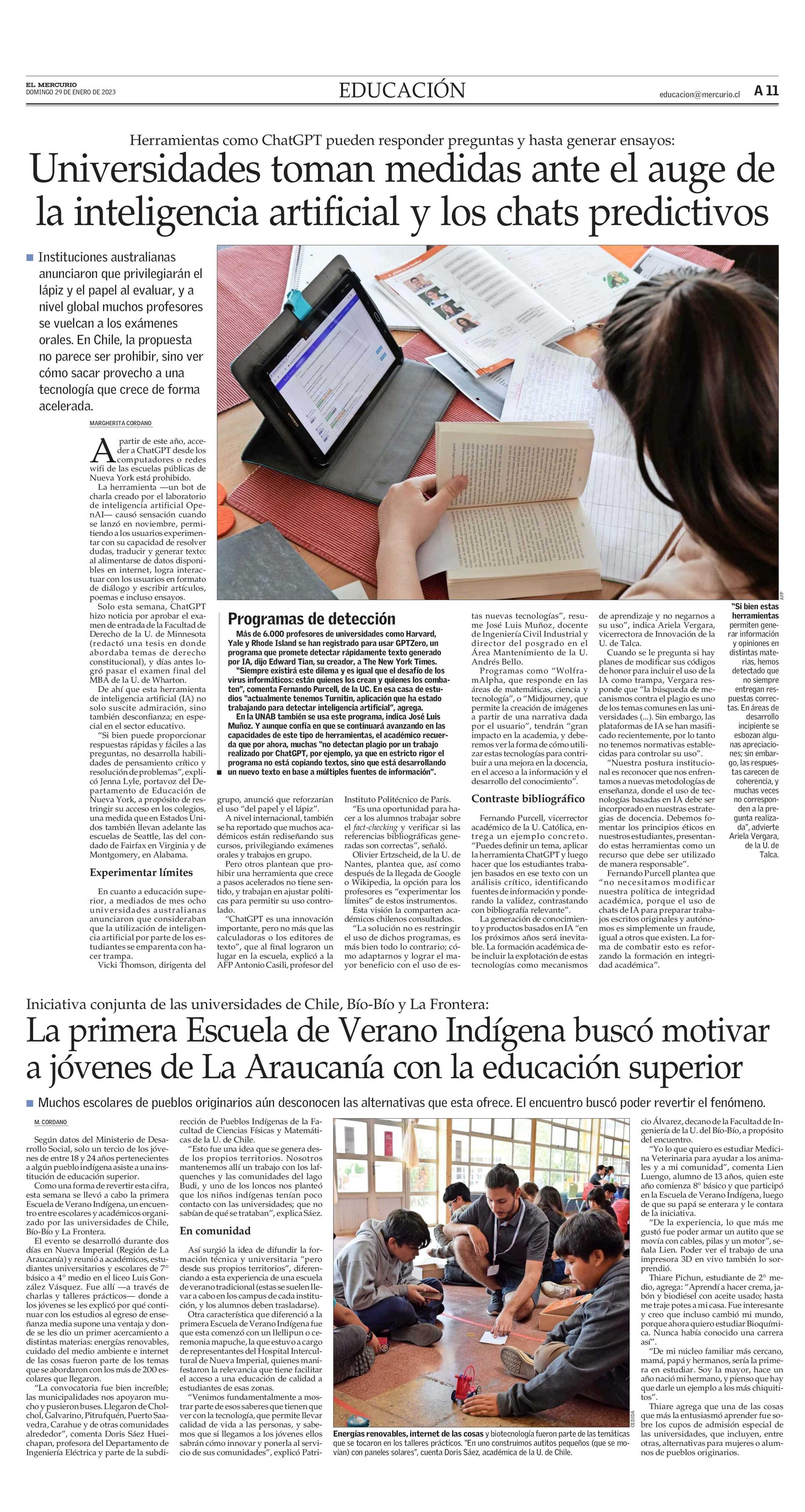 Universidades toman medidas ante el auge de la inteligencia artificial y los chats predictivos 29-01-2023 El Mercurio |