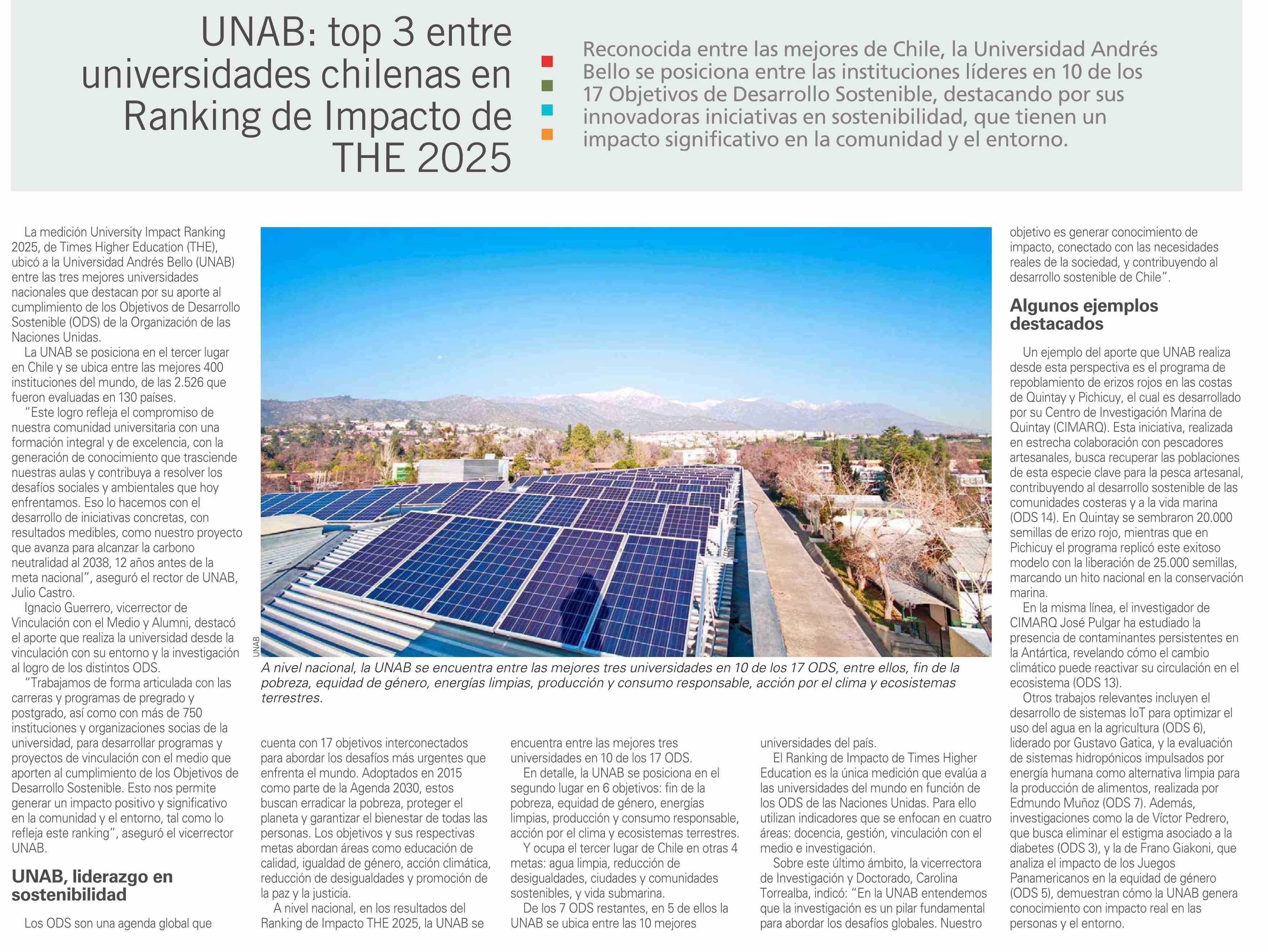 UNAB: top 3 entre universidades chilenas en Ranking de Impacto de THE 2025 26-06-2025 El Mercurio |