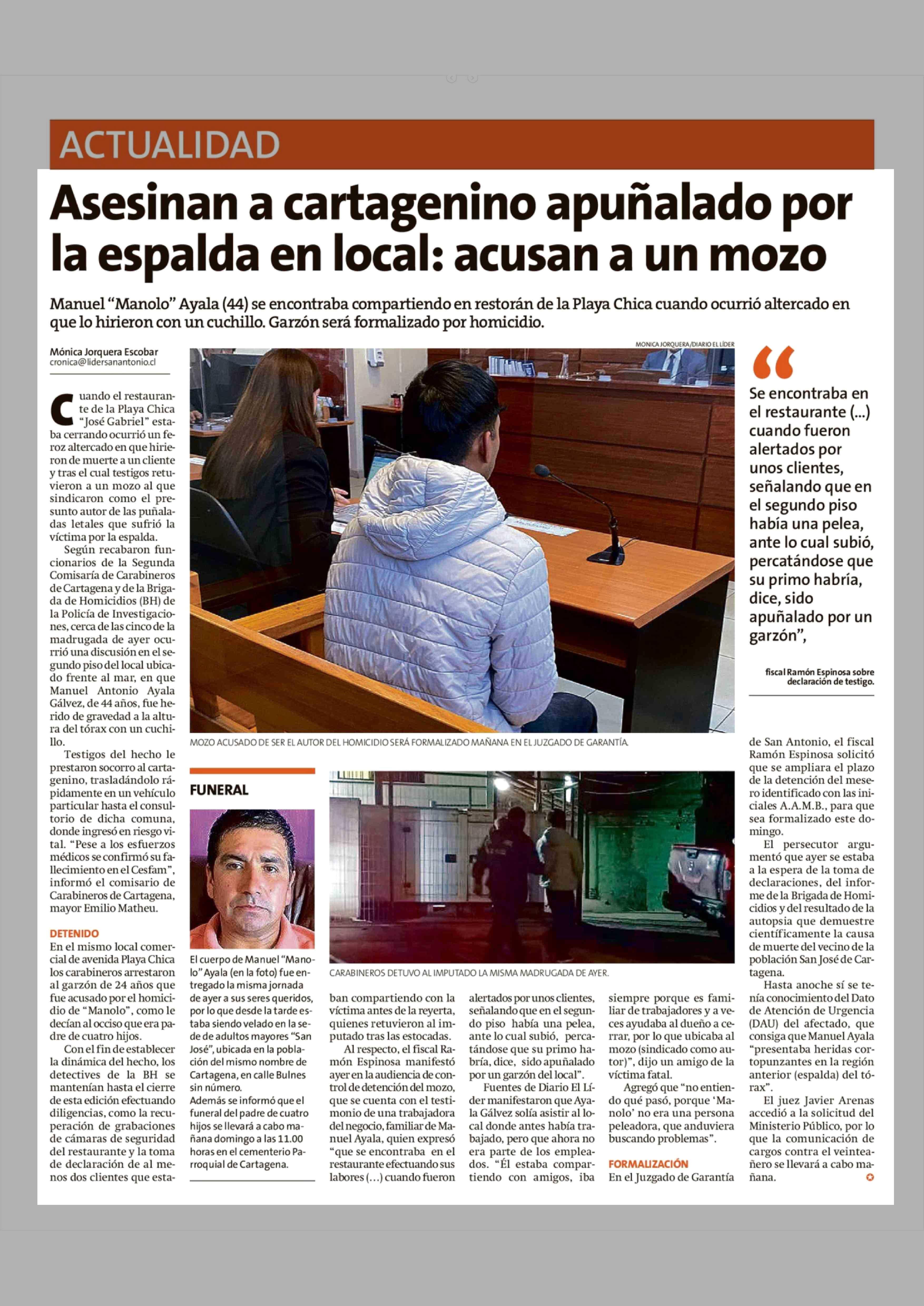 Título: Asesinan a cartagenino apuñalado por la espalda en local: acusan a un mozo