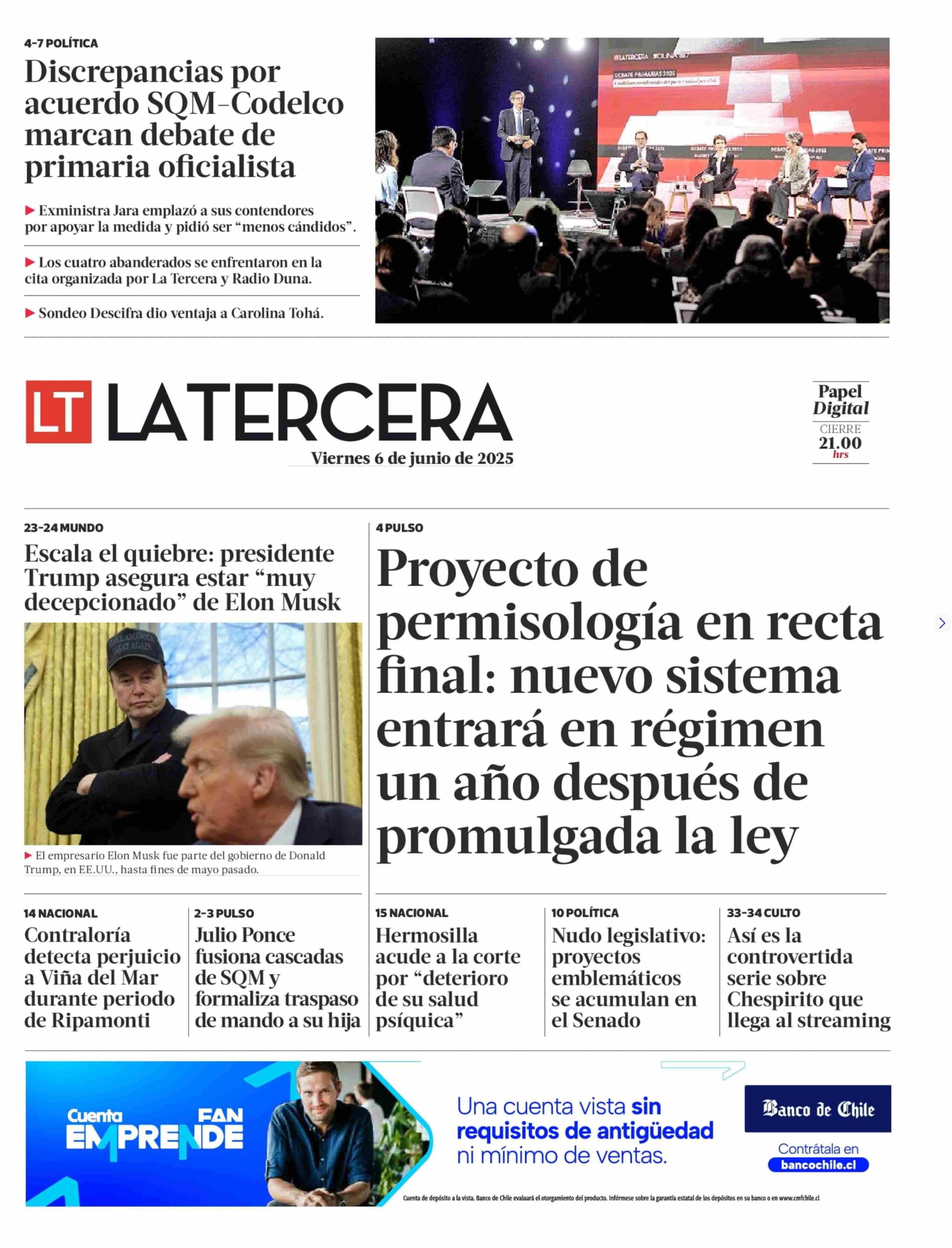 PORTADA LA TERCERA - CHILE 06-06-2025 La Tercera |