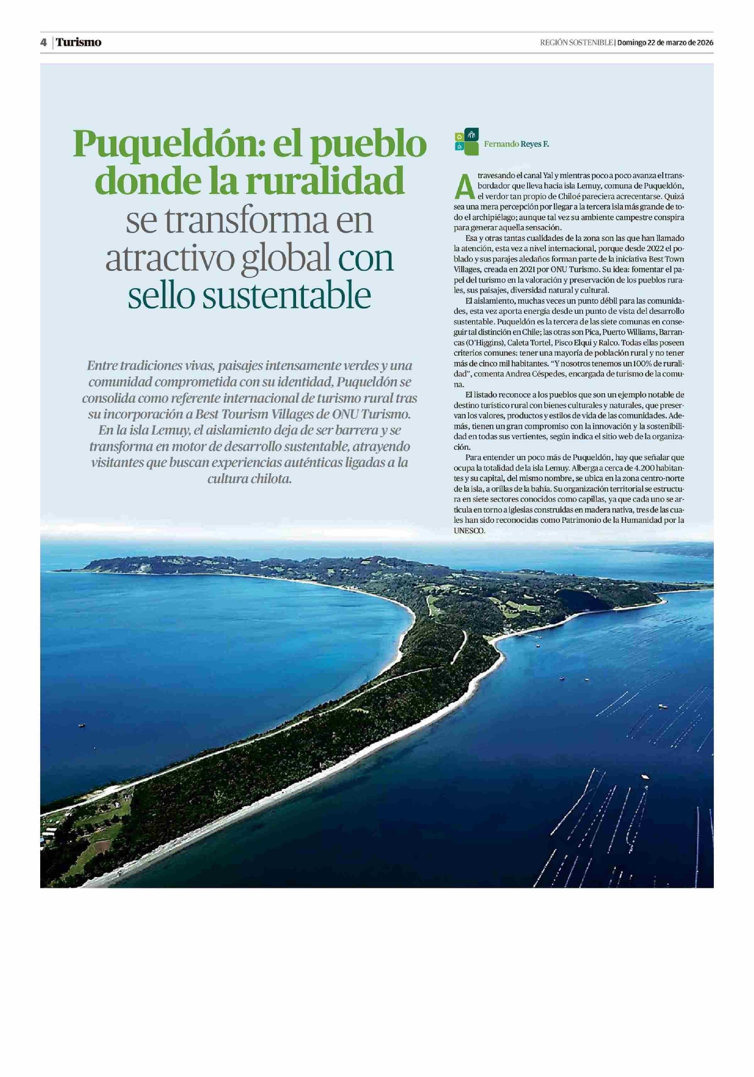 Puqueldón: el pueblo donde la ruralidad se transforma en atractivo global con sello sustentable 22-03-2026 Diario Austral Región de Los Ríos |