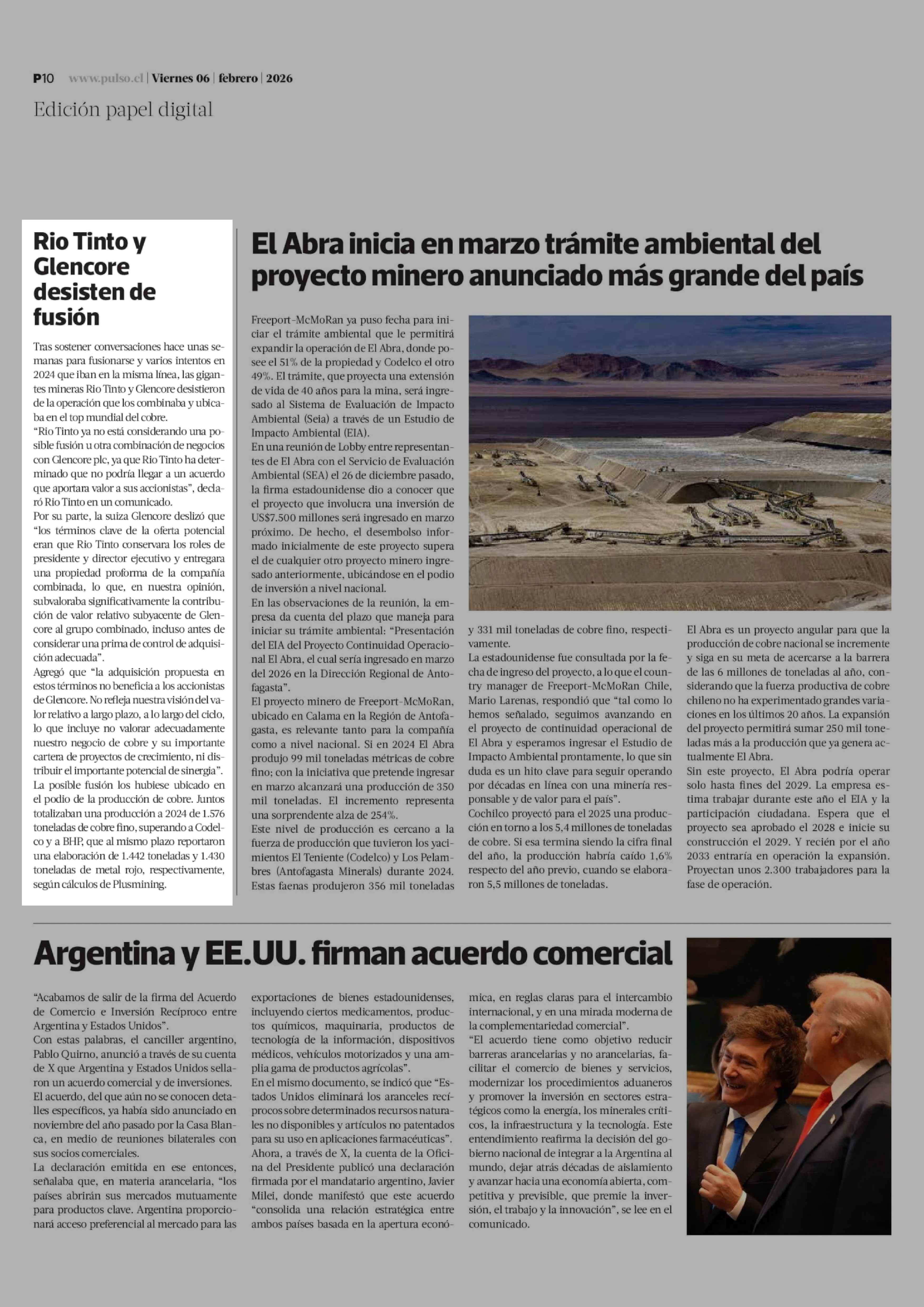 Rio Tinto y Glencore desisten de fusión 06-02-2026 La Tercera |