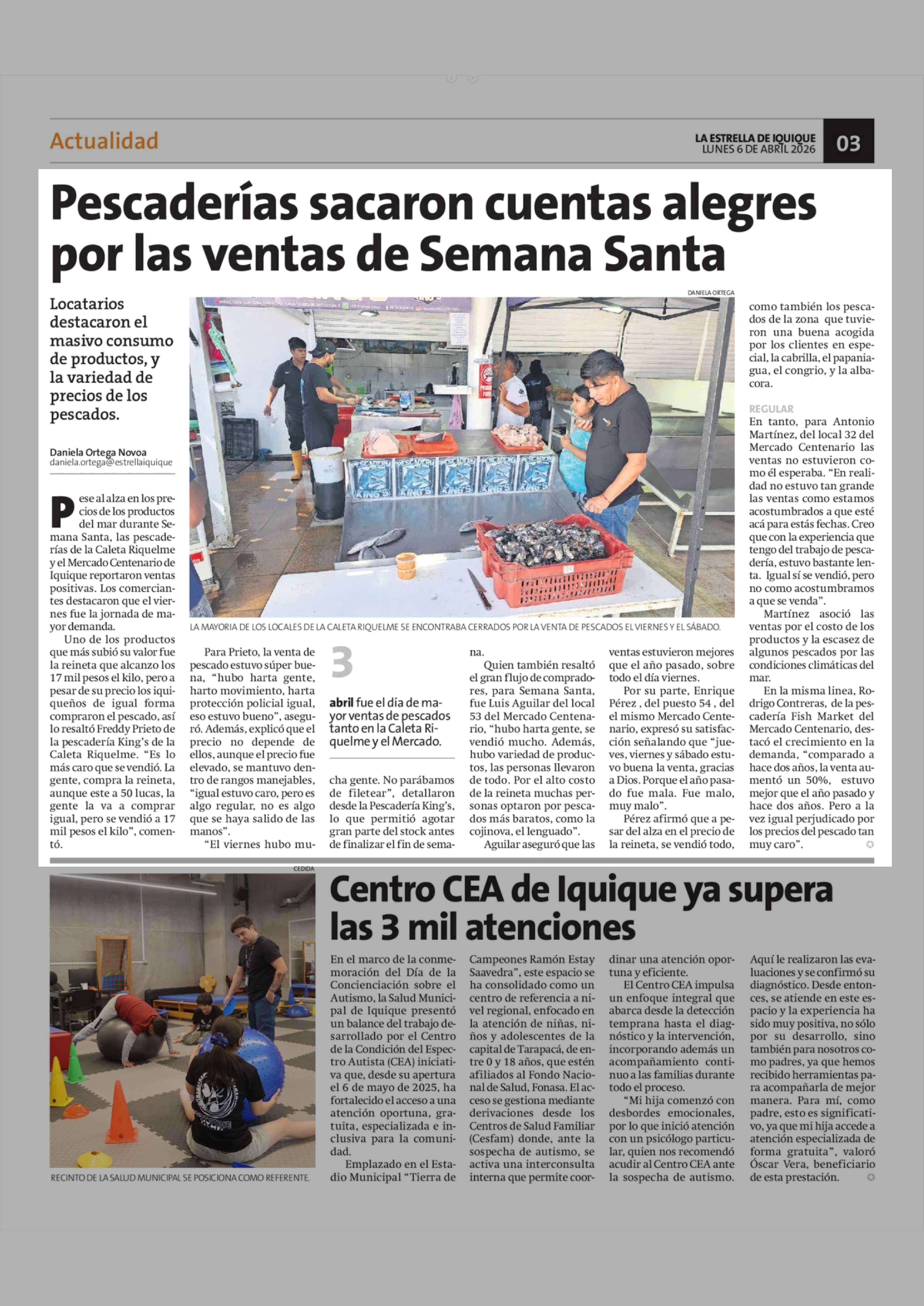 Pescaderías sacaron cuentas alegres por las ventas de Semana Santa 06-04-2026 La Estrella de Iquique |