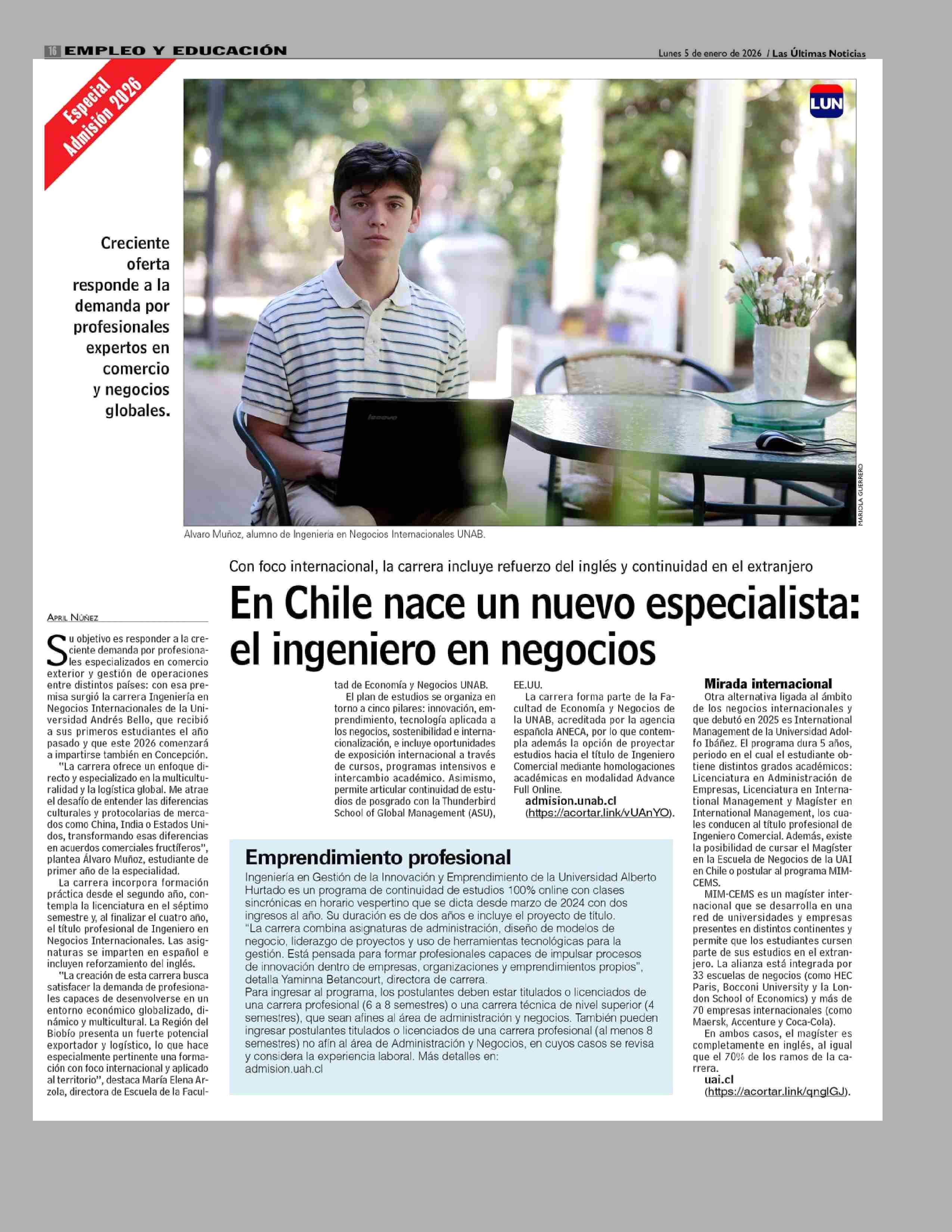En Chile nace un nuevo especialista: el ingeniero en negocios 05-01-2026 Las Últimas Noticias |