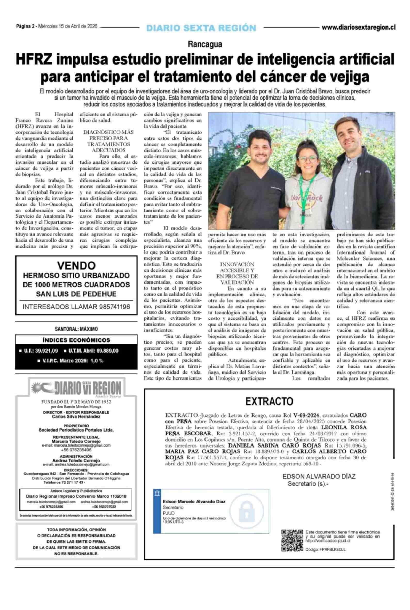 | Fecha: | 15-04-2026 | Sector: | Noticia general | Región: | Región del Libertador General Bernardo O'Higgins |