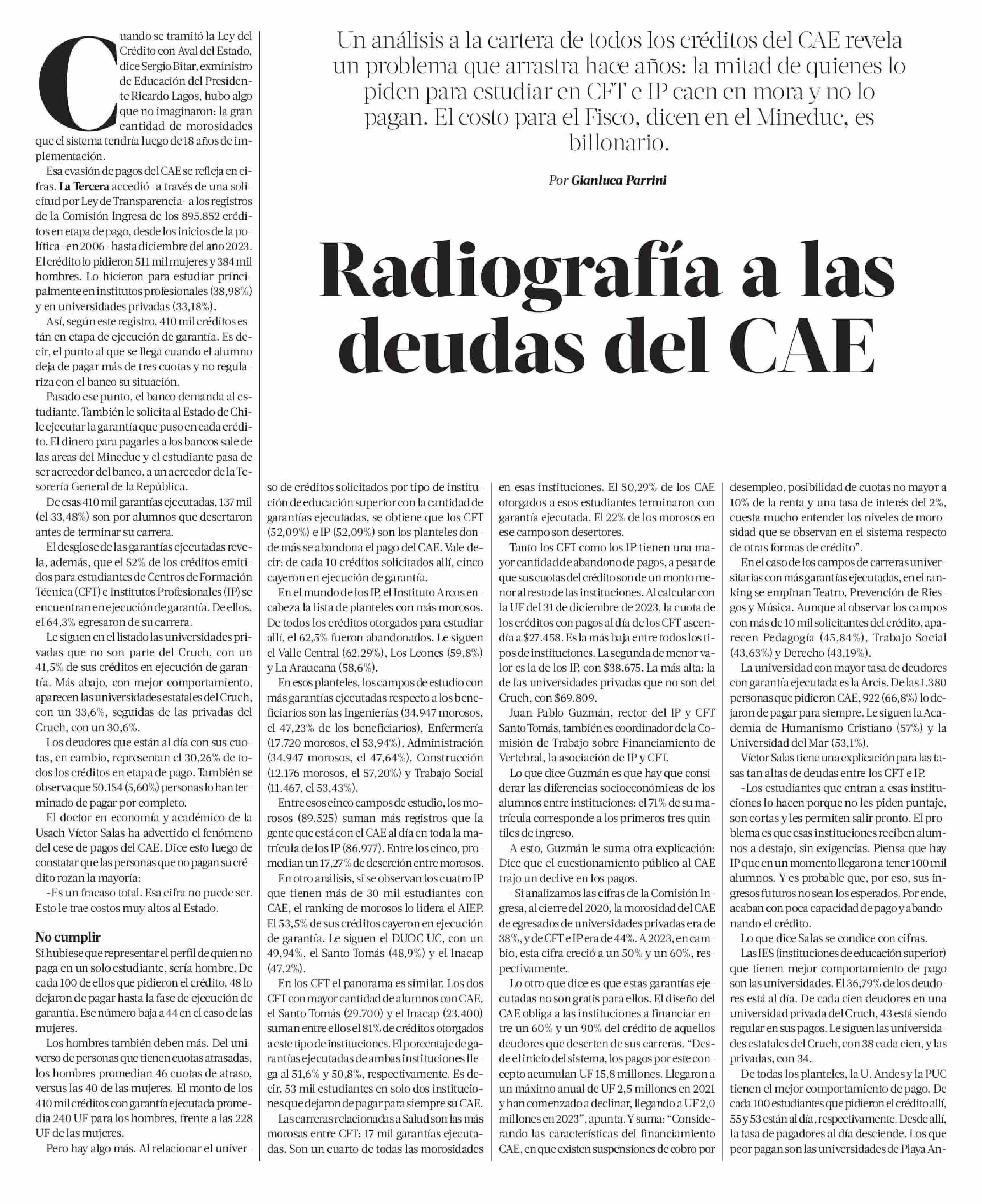 Radiografía a las deudas del CAE 16-06-2024 La Tercera |