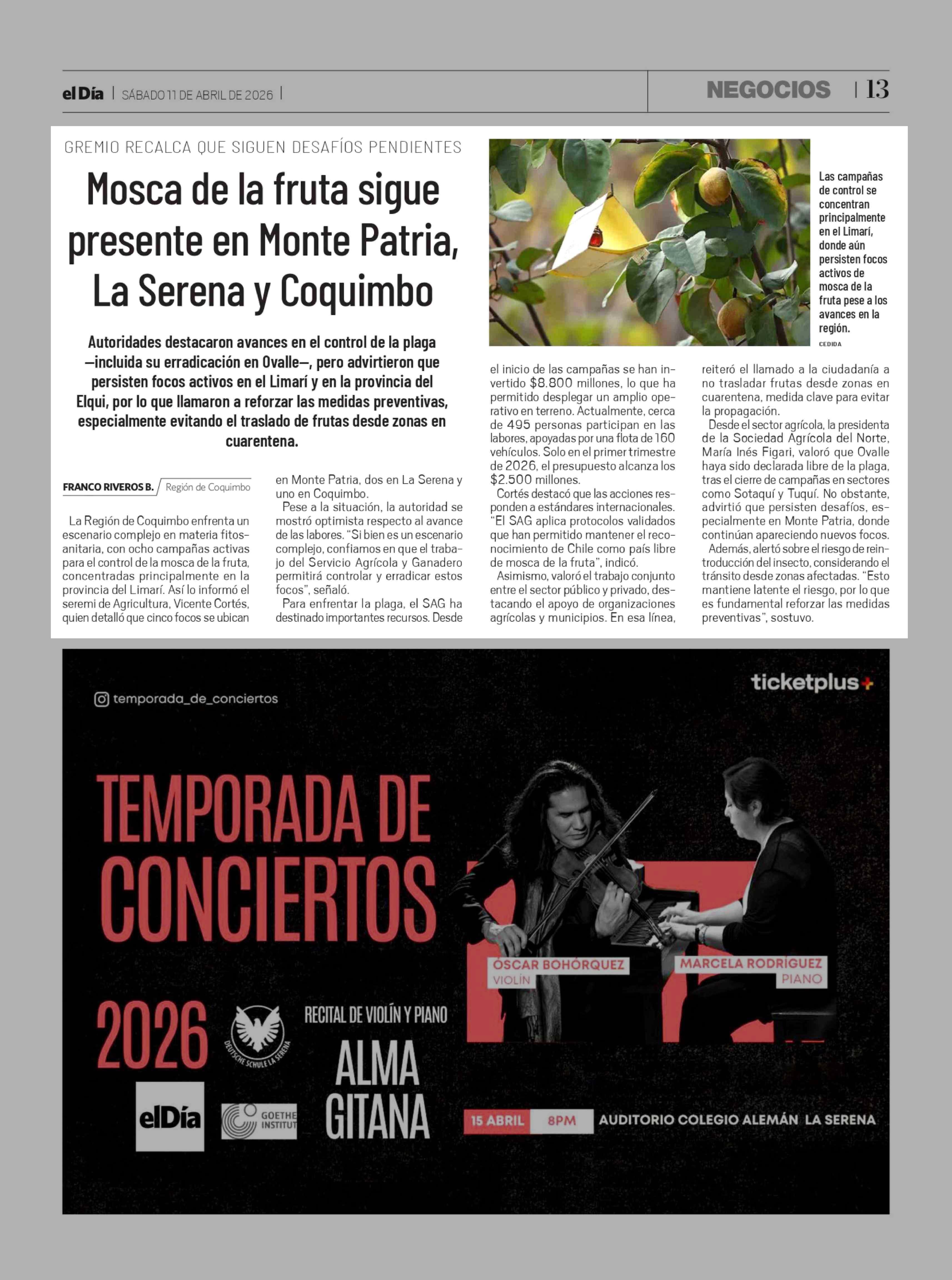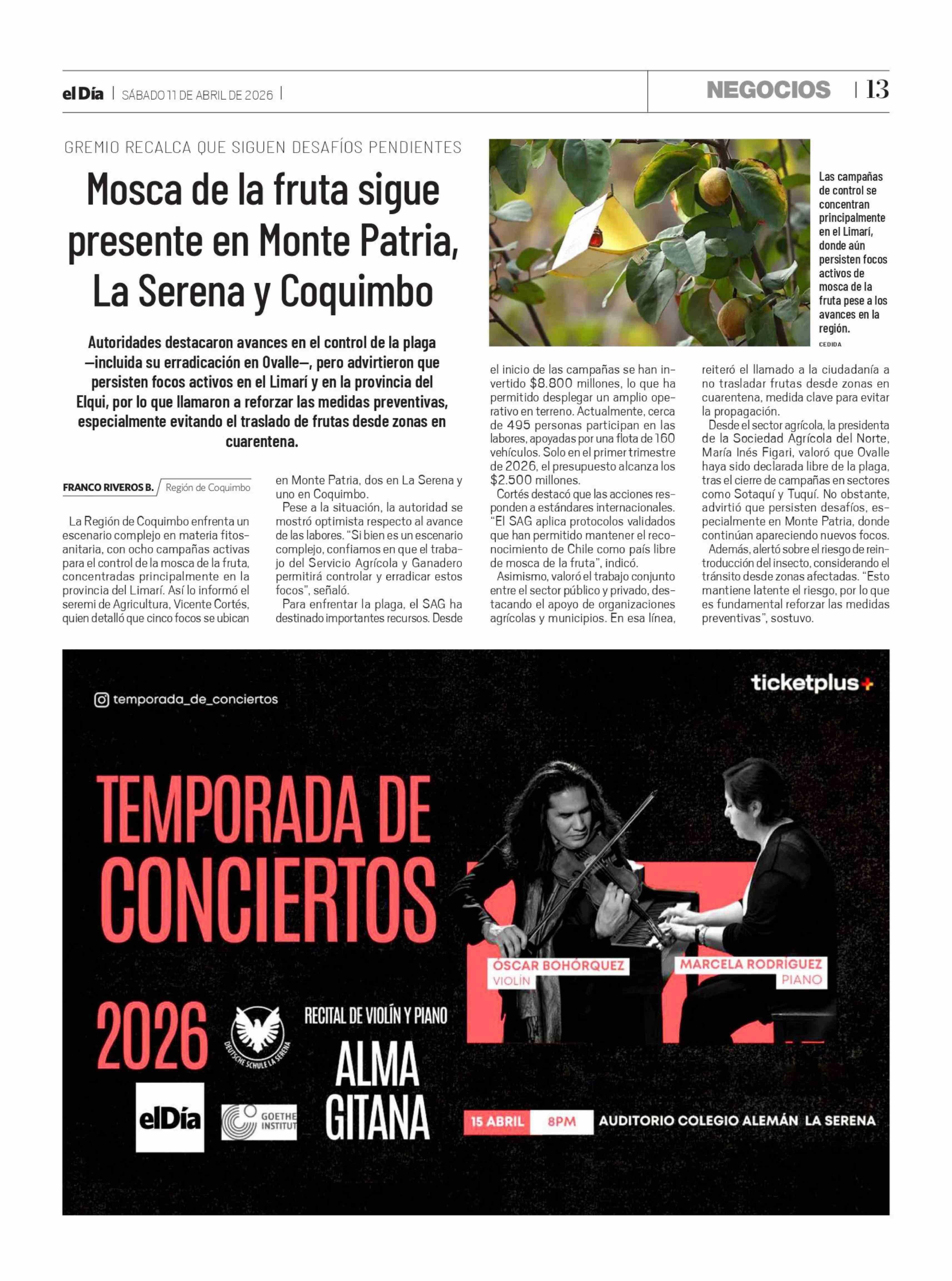 Mosca de la fruta sigue presente en Monte Patria, La Serena y Coquimbo 11-04-2026 El Día |
