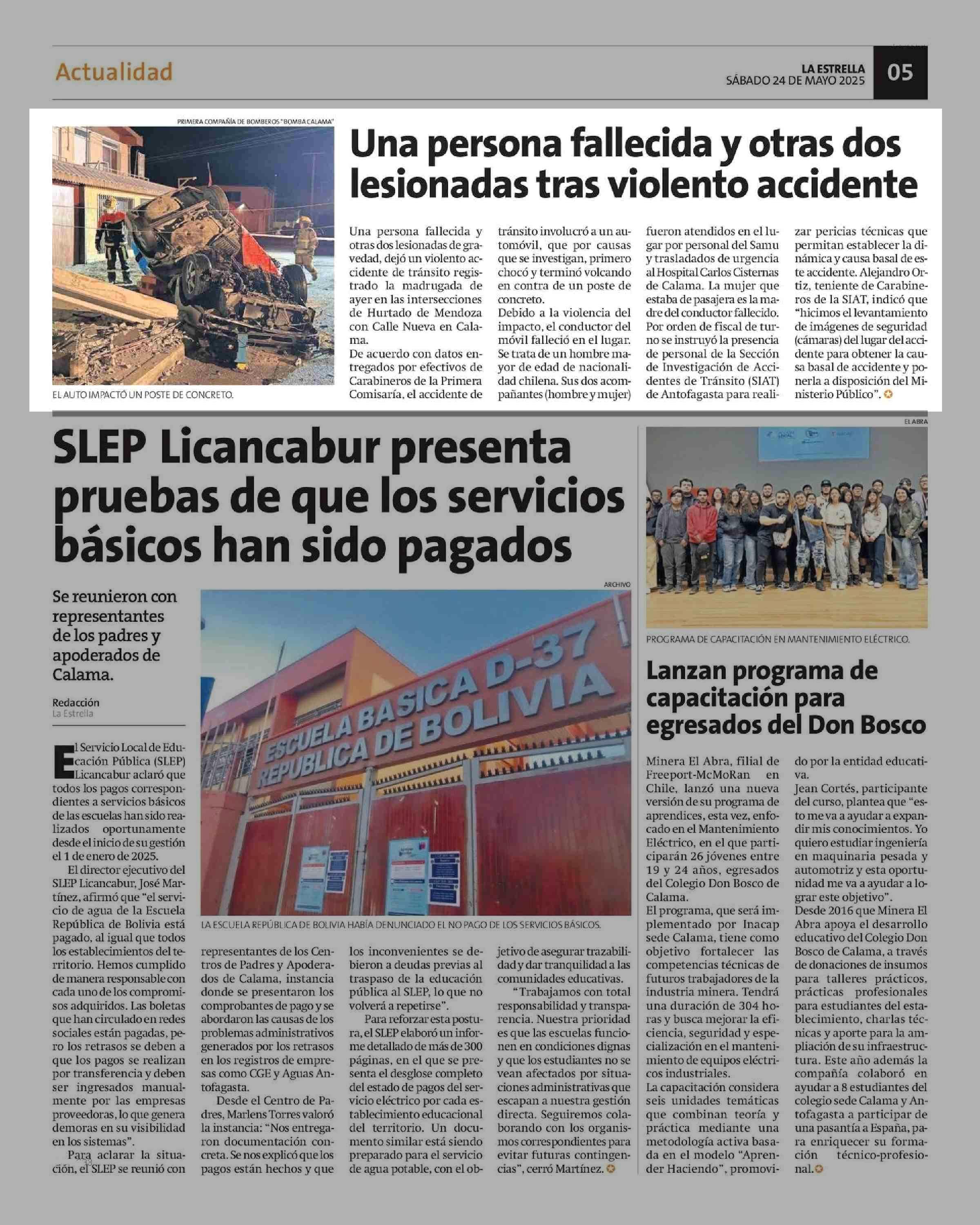 | Fecha: | 24-05-2025 | Sector: | Noticia general | Región: | Región de Antofagasta |