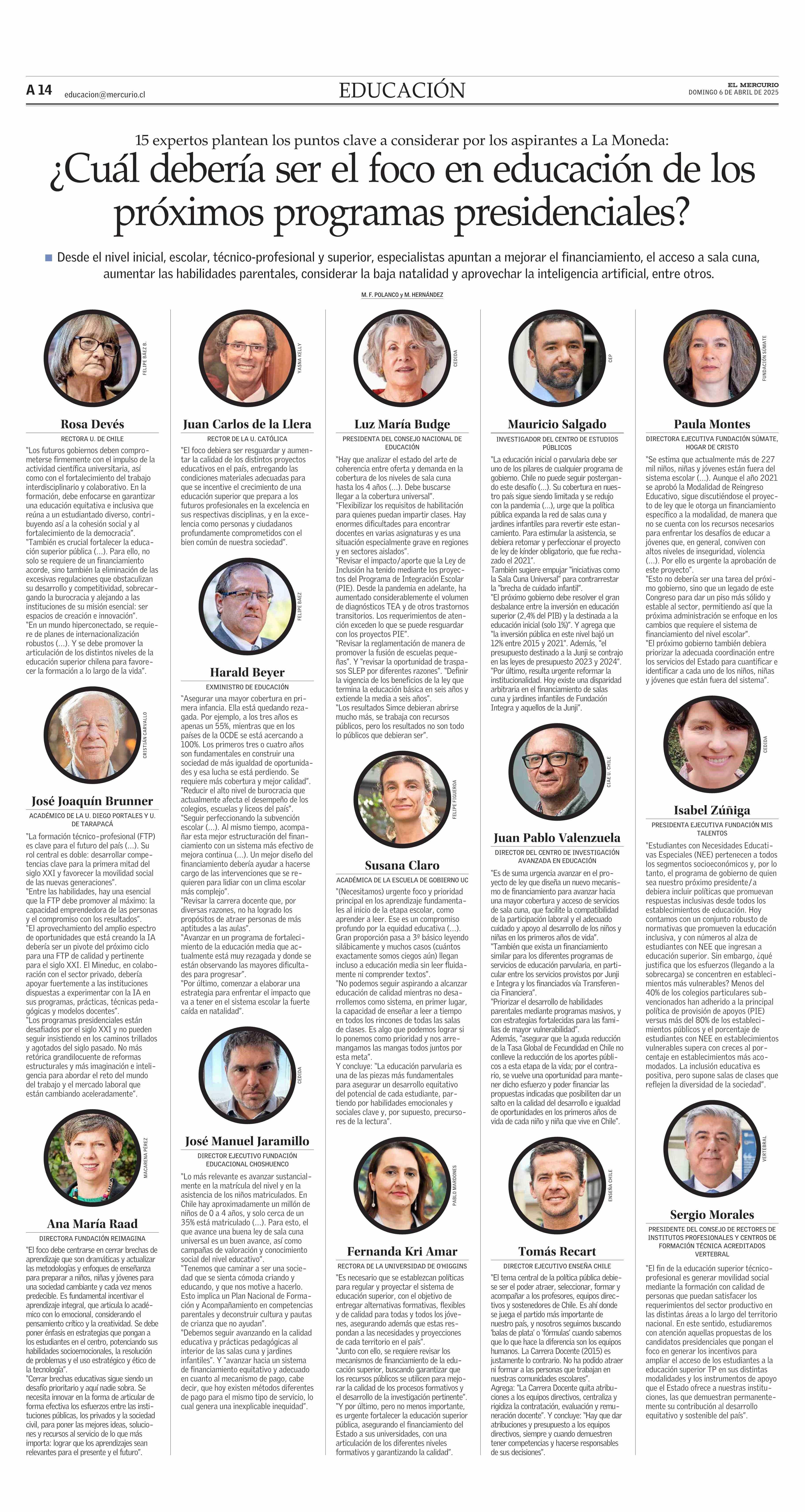 ¿Cuál debería ser el foco en educación de los próximos programas presidenciales? 06-04-2025 El Mercurio |