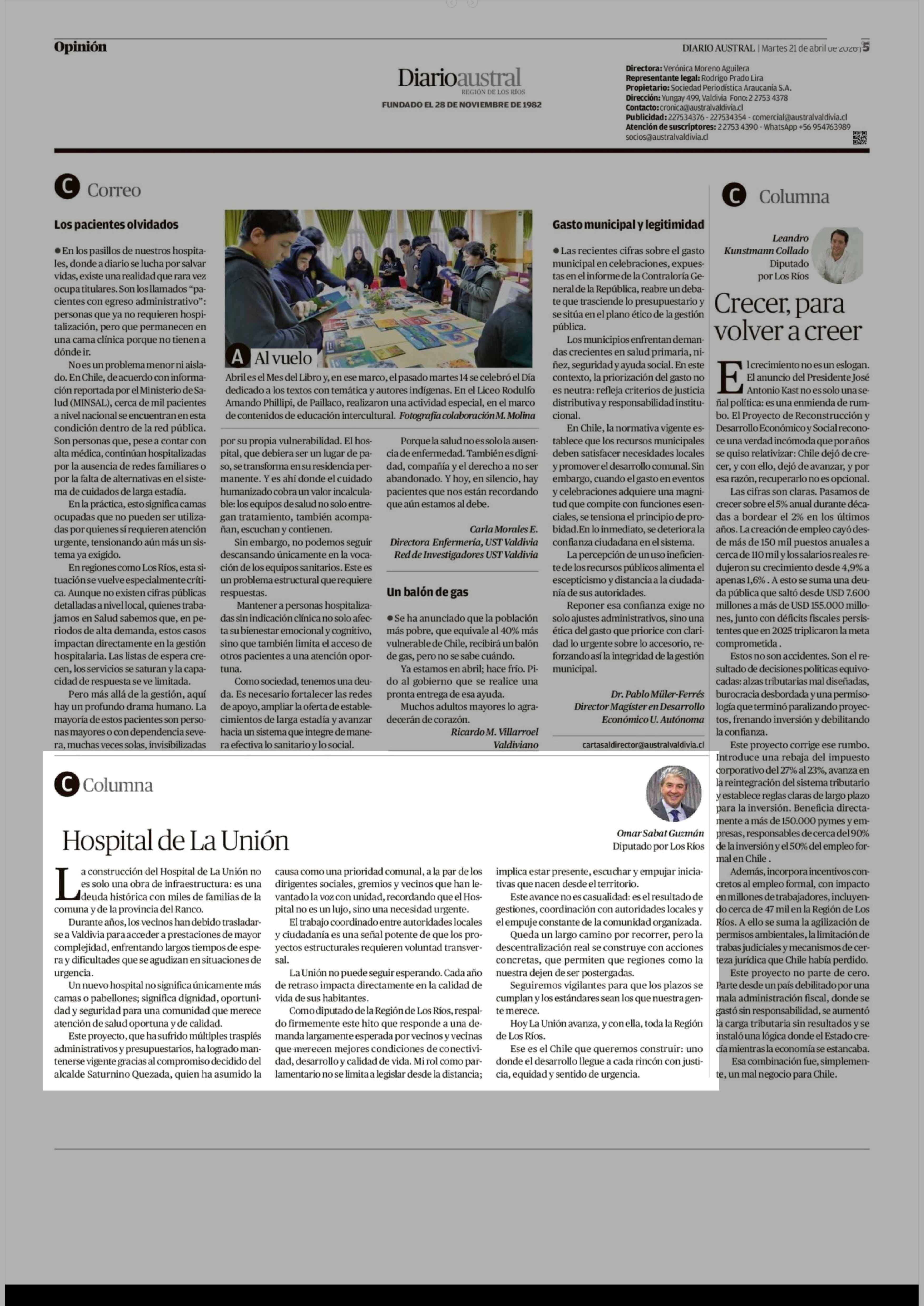 Fecha: 21-04-2026 Sector: Columnas de Opinión Región: Región de Los Ríos