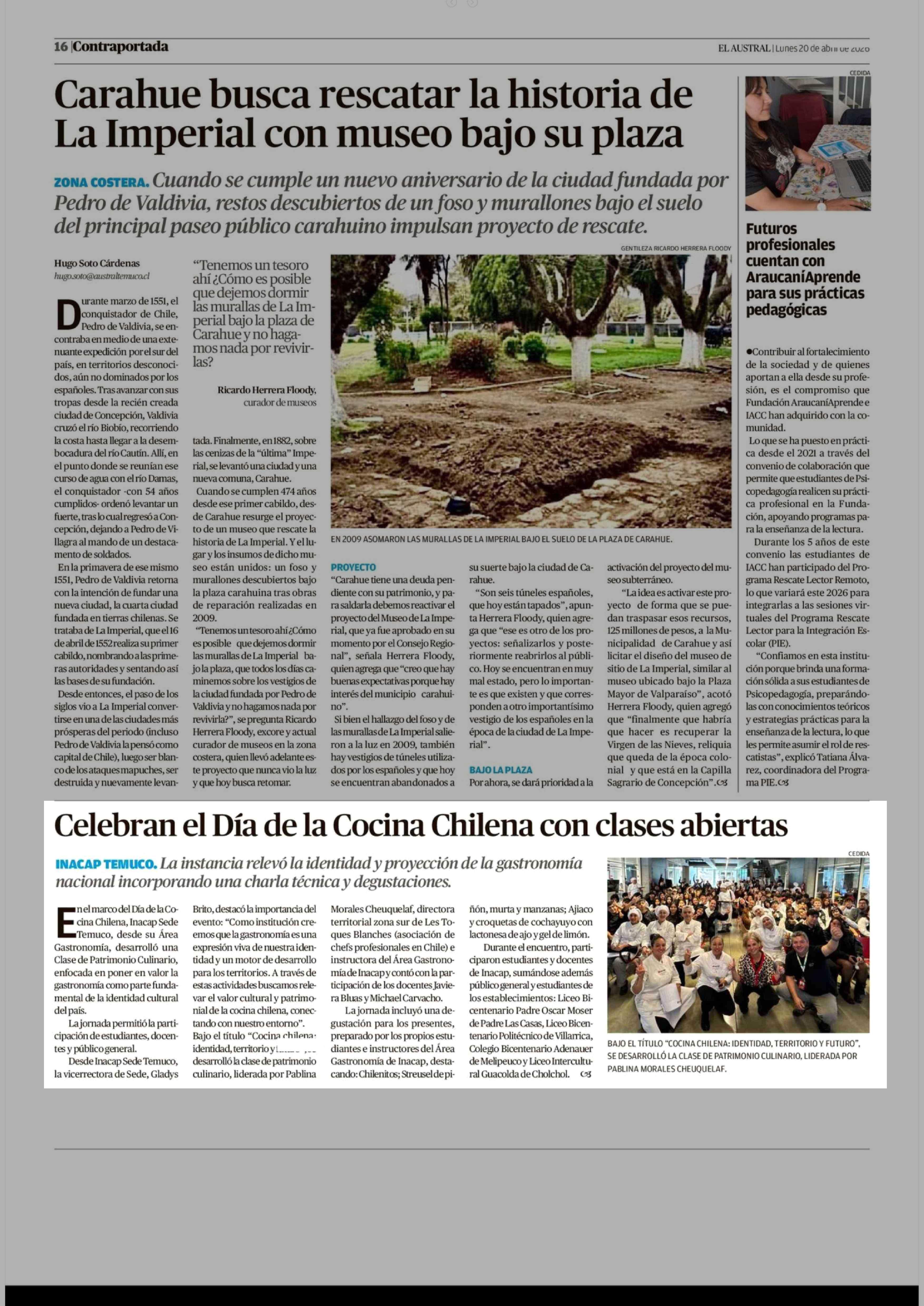 | Fecha: | 20-04-2026 | Sector: | Noticia general | Región: | Región de la Araucanía |